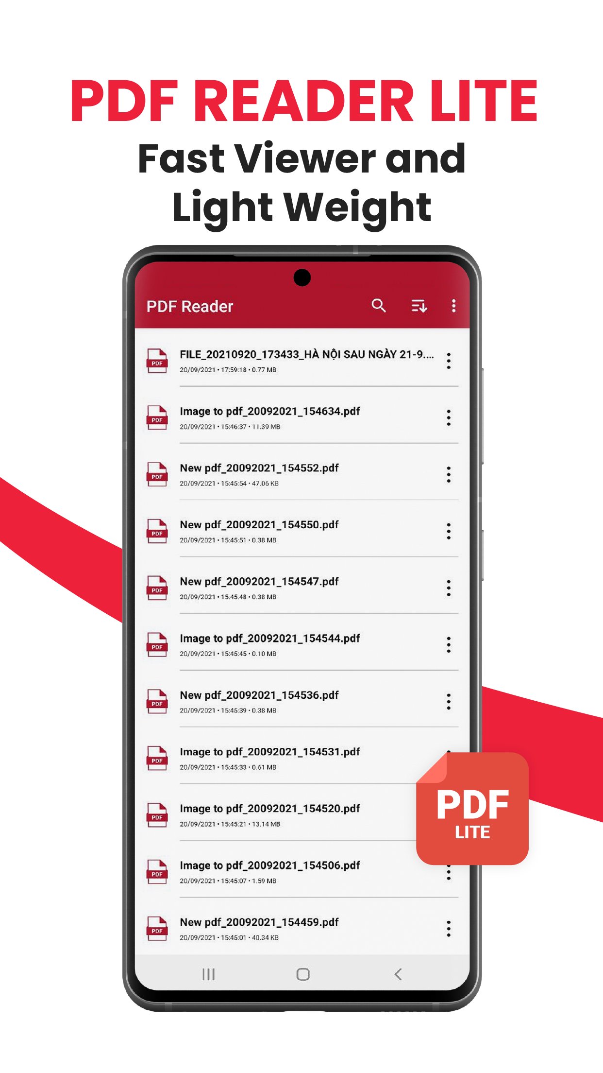 Besides, a PDF file manager is included in the PDF Viewer Lite - PDF Reader. You can search and sort any documents via names, dates, and sizes.