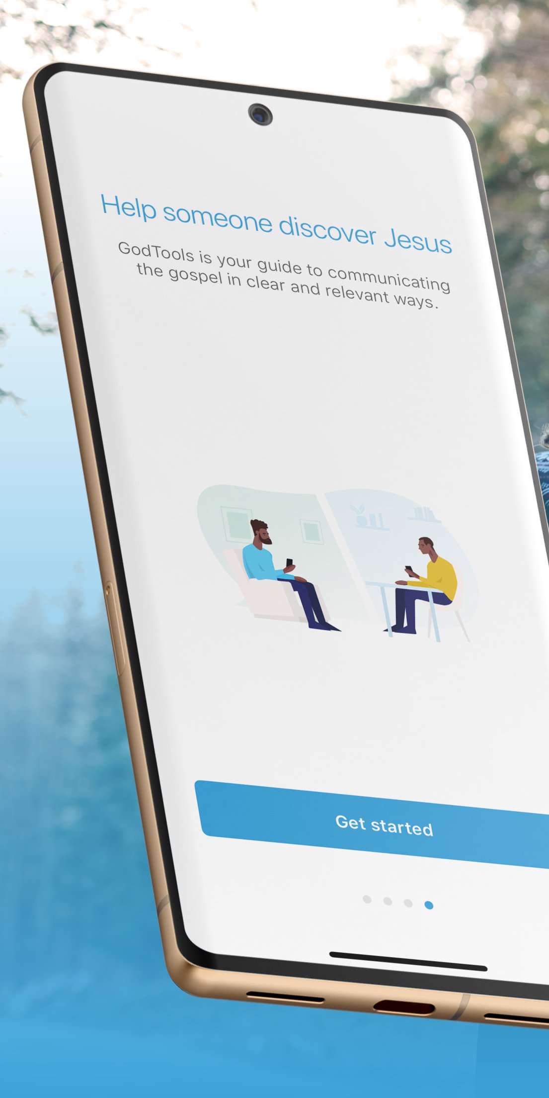 ในฐานะคริสตศาสนิกชน คุณคงอยากให้คนรอบข้างได้รู้ว่าการมีความสัมพันธ์ที่ใกล้ชิดกับพระเจ้านั้นจะทำให้ชีวิตเปลี่ยนแปลงไปได้อย่างไร แต่การเริ่มบทสนทนาในเรื่องนี้กลับไม่ง่ายเลย เปิด GodTools และบอกให้คู่สนทนารู้ว่าคุณมีความเชื่อในสิ่งใดและทำไมสิ่งนั้นจึงสำคัญ ในภาษาที่พวกเขาเข้าใจ