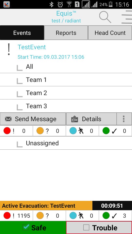 'Equis' เป็นแอปพลิเคชั่นสหายมือถือสำหรับโซลูชัน Employee Mustering ของ Radiant RFID ช่วยให้ผู้ใช้สามารถส่งการอัปเดตสถานะในระหว่างเหตุการณ์การอพยพหรือการรวมตัวเพื่อยกเลิกสถานที่และสถานะความปลอดภัยของตน นอกจากนี้ 'Equis' ยังช่วยให้ผู้ใช้บางรายสามารถดูการอัปเดตสถานะแบบเรียลไทม์ระหว่างการอพยพหรือเหตุการณ์การรวมตัว และตรวจสอบและติดป้ายสถานะบุคลากรและผู้เยี่ยมชมได้มาถึงสถานที่ชุมนุมอย่างปลอดภัยแล้ว