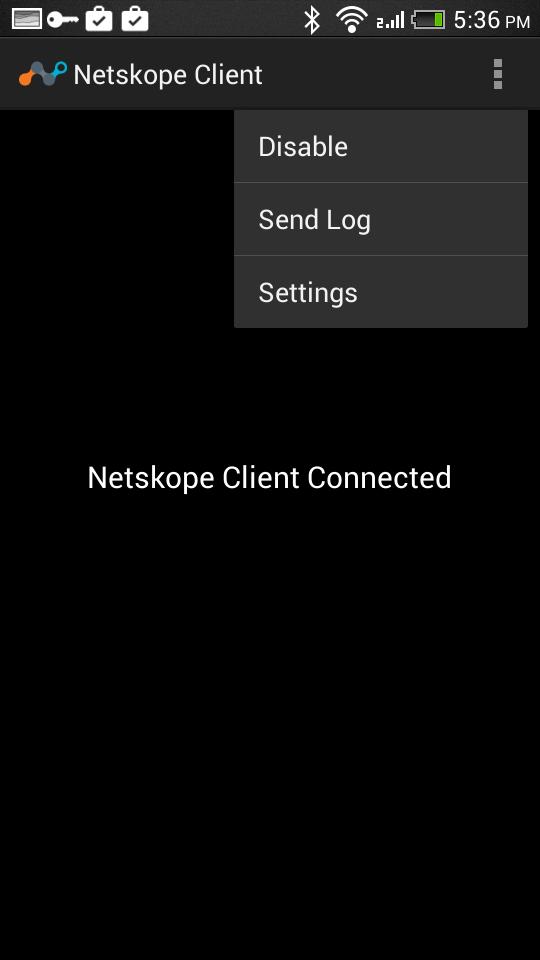 Netskope Client ใช้ Android VpnService และมี VPN เป็นฟังก์ชันหลัก สร้างอุโมงค์ระดับอุปกรณ์ที่ปลอดภัยซึ่งเข้ารหัสโดย TLS/DTLS ไปยังหนึ่งในเกตเวย์ Netskope ระยะไกลใน Netskope Security Can