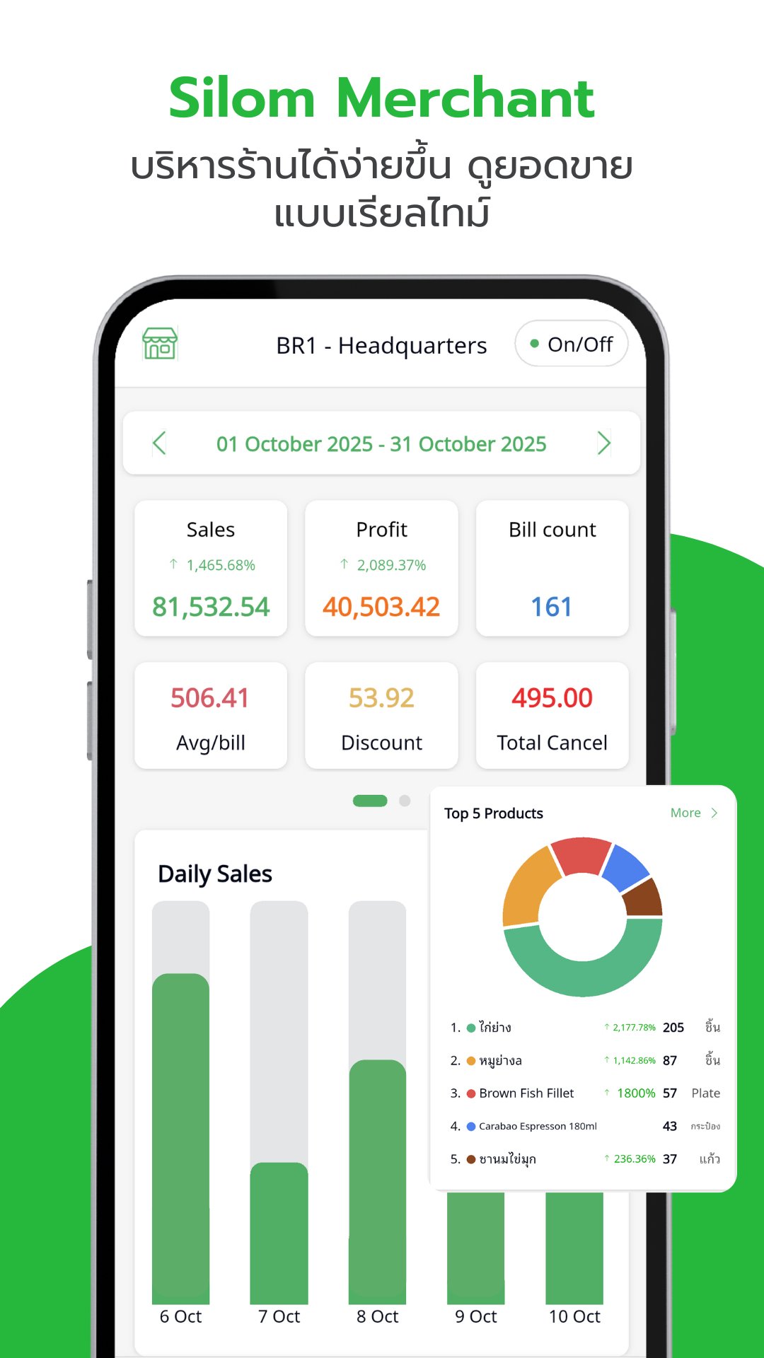 ติดตามการขายของร้านคุณอย่างง่าย ผ่านข้อมูลออนไลน์ด้วย Silom Merchant อย่างง่ายและรวดเร็ว โดยทำงานคู่กับ SilomPOS