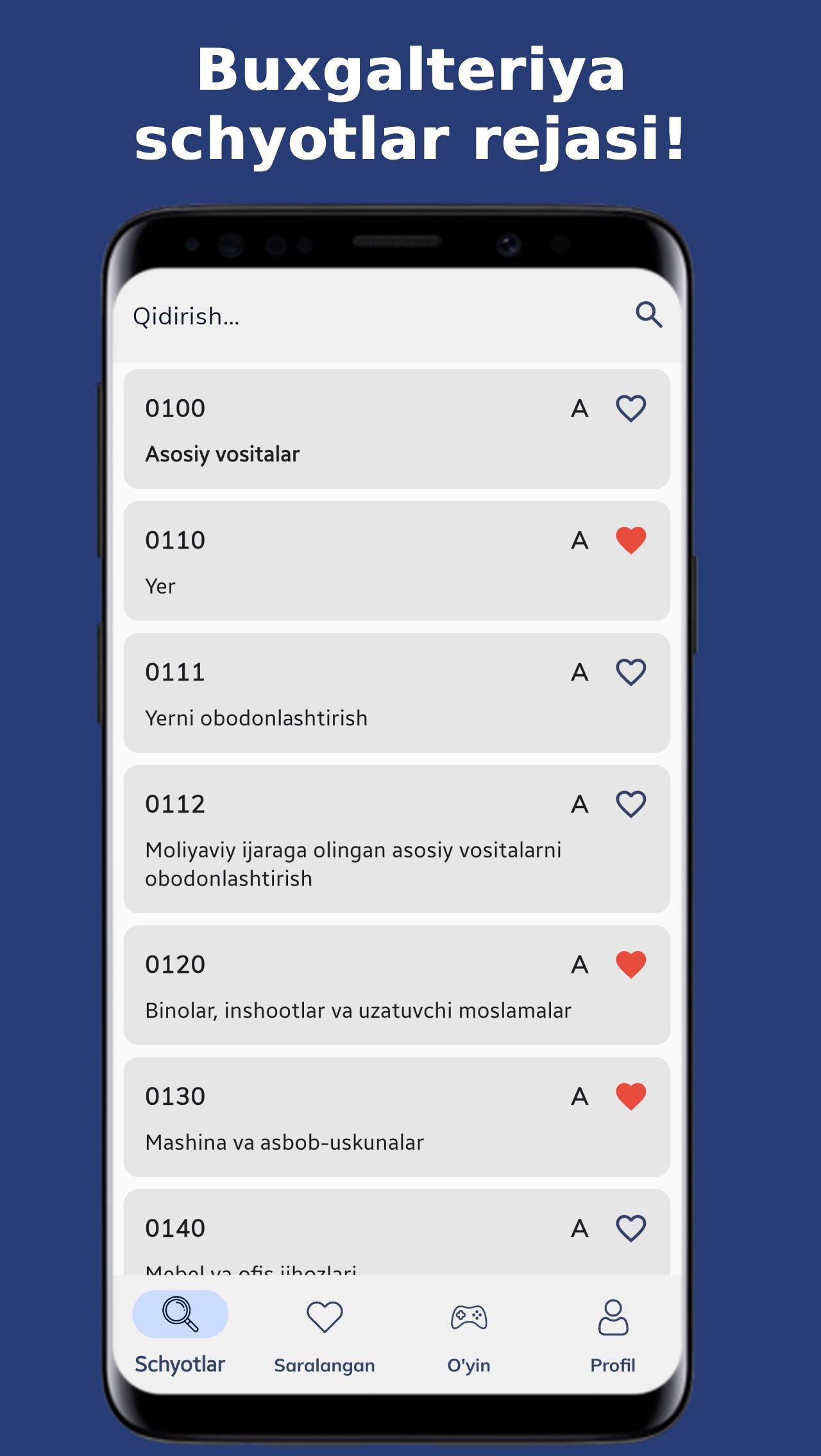 Это приложение поможет вам изучить план счетов бухгалтерии Узбекистана (НПБУ — Национальные стандарты бухгалтерского учёта) быстро, легко и эфективно.