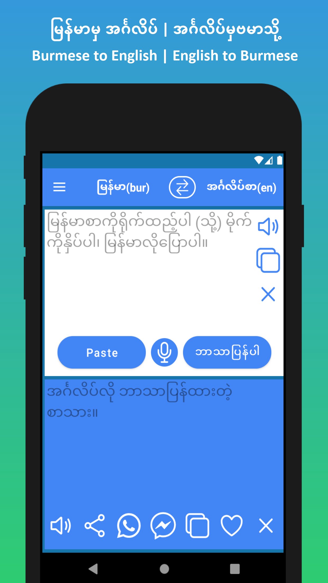 #1 BurEngBur: แอปแปลภาษาพม่าเป็นอังกฤษและแอปแปลภาษาอังกฤษเป็นภาษาพม่า