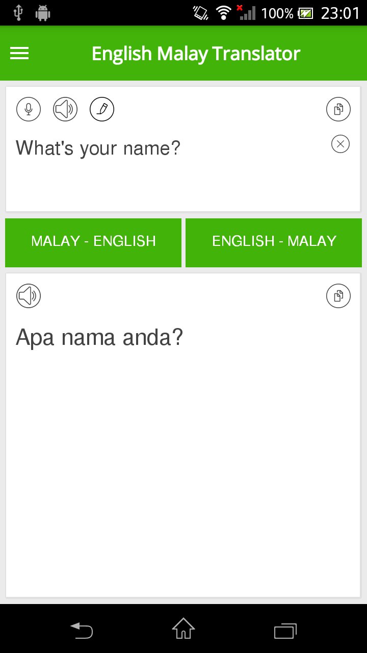 ด้วยภาษาอังกฤษภาษามลายูแปลคุณสามารถแปลคำศัพท์และข้อความจากภาษาอังกฤษเป็นภาษามาเลย์และภาษามลายูแปลเป็นภาษาอังกฤษ ที่ดีที่สุดในการแปลภาษาอังกฤษเป็นภาษามาเลย์สำหรับนักเรียนหรือนักท่องเที่ยวที่เดินทางมาพักผ่อน