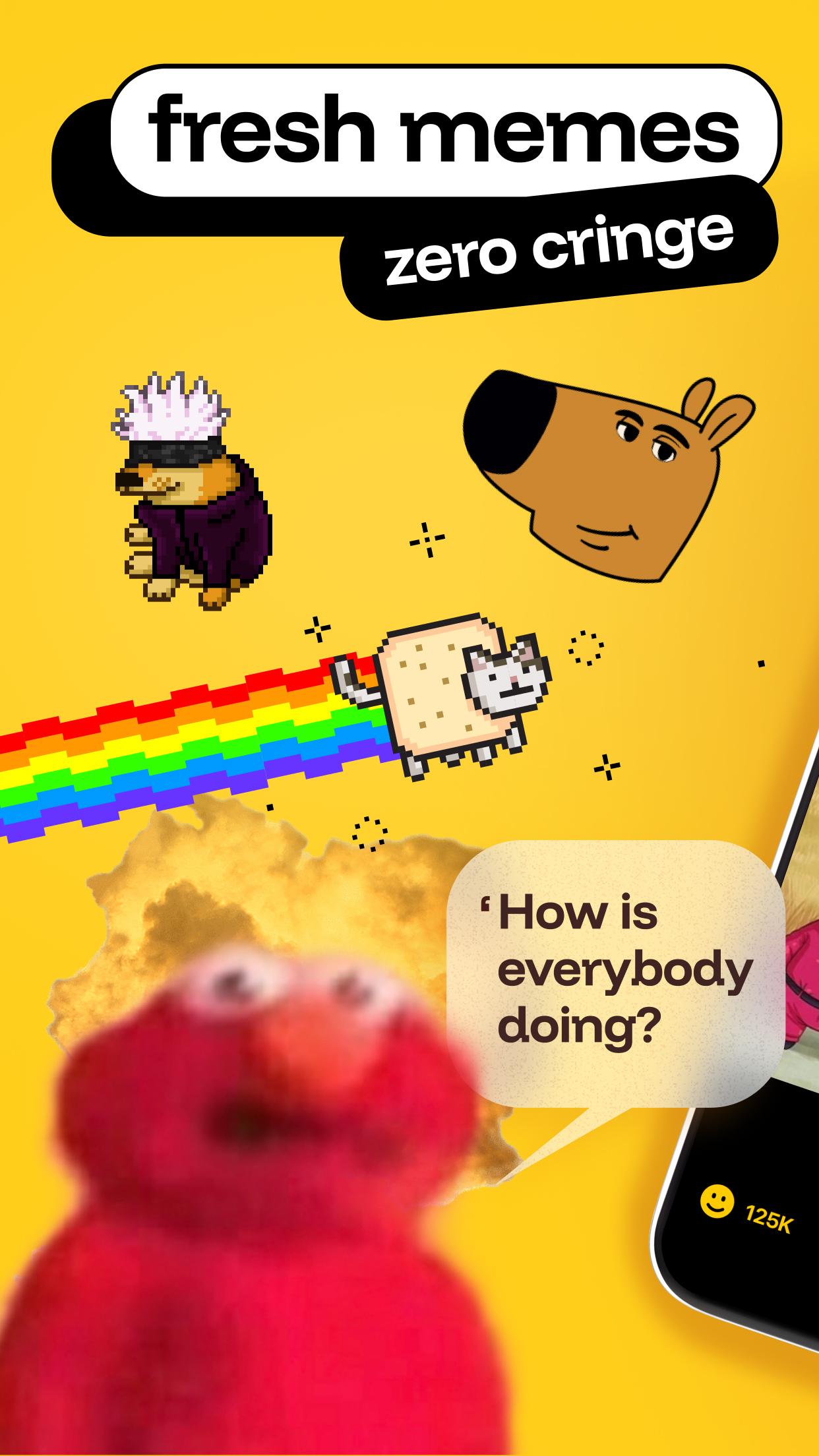คอนเทนต์ไม่รู้จบ: ไม่ว่าอารมณ์ ความสนใจ อารมณ์ขัน หรือวันของคุณจะเป็นอย่างไร — ก็มีมีมที่อธิบายอารมณ์ของคุณได้ และยังมีมีมอีกกว่า 100 แบบให้คุณสนุกไปกับมัน ด้วยมุกตลก วิดีโอ และรูปภาพสุดฮานับพันรายการที่คุณเข้าถึงได้ง่าย คุณจะพบกับมุกตลกที่ทำให้คุณหัวเราะได้เสมอ สำรวจคอลเล็กชันมีมสุดพิเศษและมุกตลกสุดฮามากมายของเราที่ได้รับความนิยมบน TikTok, Reddit และ Rednote ยิ่งไปกว่านั้น คุณยังสามารถสร้างมีมของคุณเองได้ด้วยแอปสร้างมีมวิดีโอของเรา!