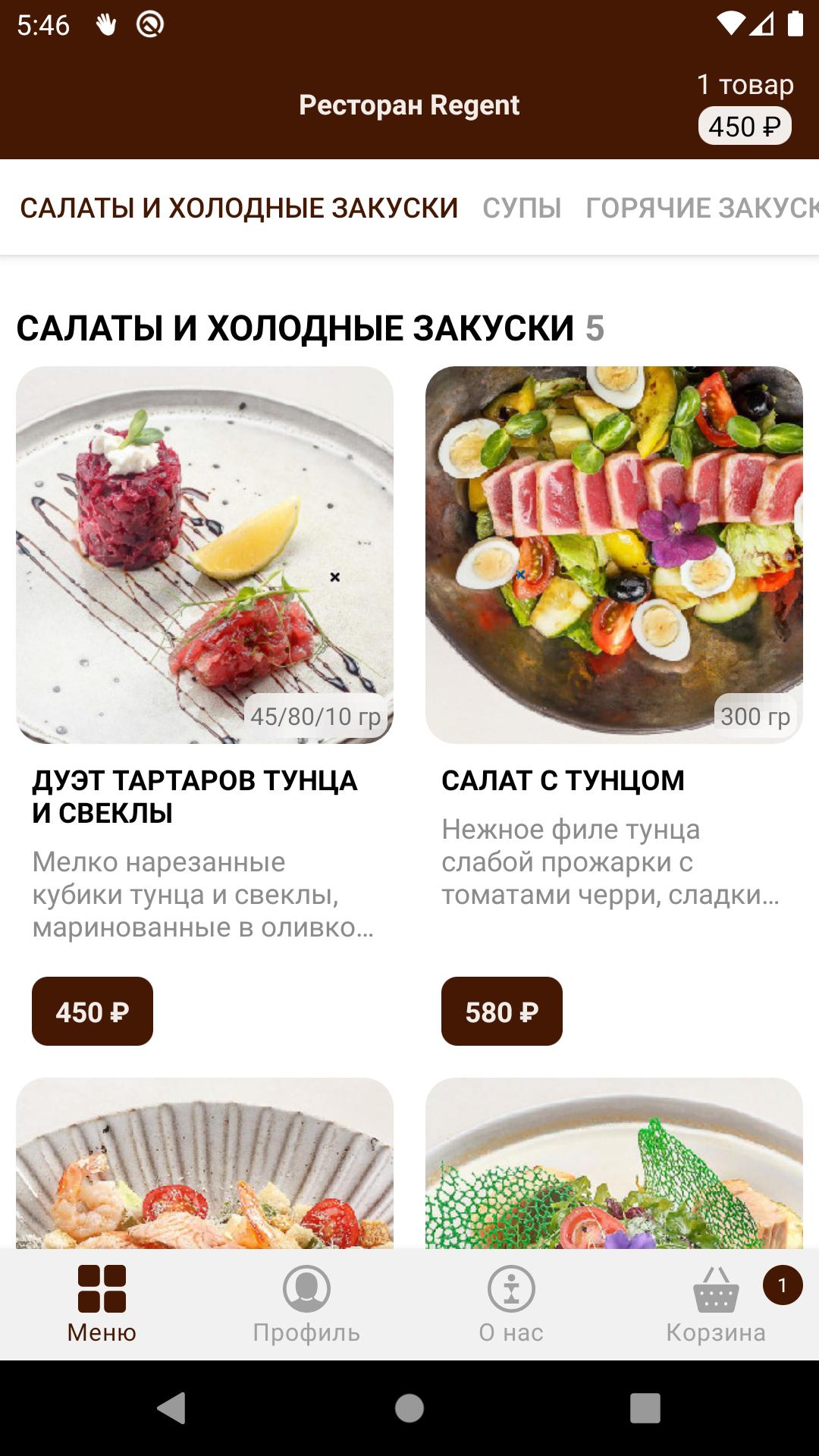 ร้านอาหาร "รีเจ้นท์" ก่อตั้งขึ้นในปี 1992 และเป็นเวลาหลายปีที่ได้รับการบำรุงรักษามาตรฐานระดับสูงของการบริการและชุดอาหารตั้งแต่เริ่มก่อตั้ง การยึดมั่นในประเพณีและความซื่อสัตย์ในหลักสูตรที่กำหนดนั้นทำให้ร้านอาหารสามารถรักษาชื่อเสียงที่ดีและเป็นข้อได้เปรียบที่ไม่อาจปฏิเสธได้ของร้านอาหารซึ่งสะท้อนให้เห็นในสโลแกนของร้านอาหาร: "การรักษาประเพณี"