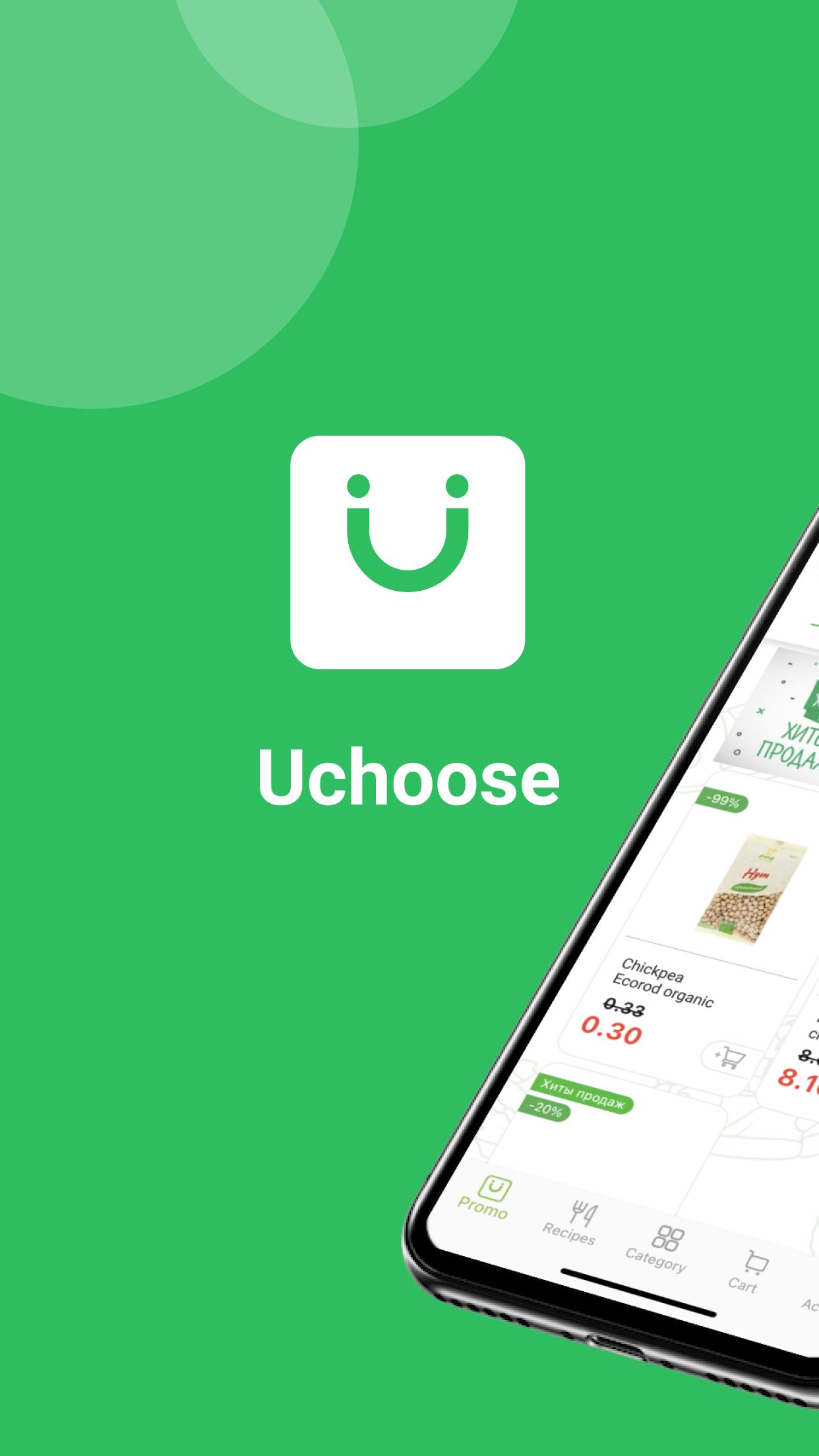 uChosse - пропонує широкий асортимент якісних та свіжих продуктів. Замовлення доставляється кур”єром, або можна забрати самостійно з найближчого супермаркету. Завантажуйте мобільний додаток та користуйтеся із задоволенням.