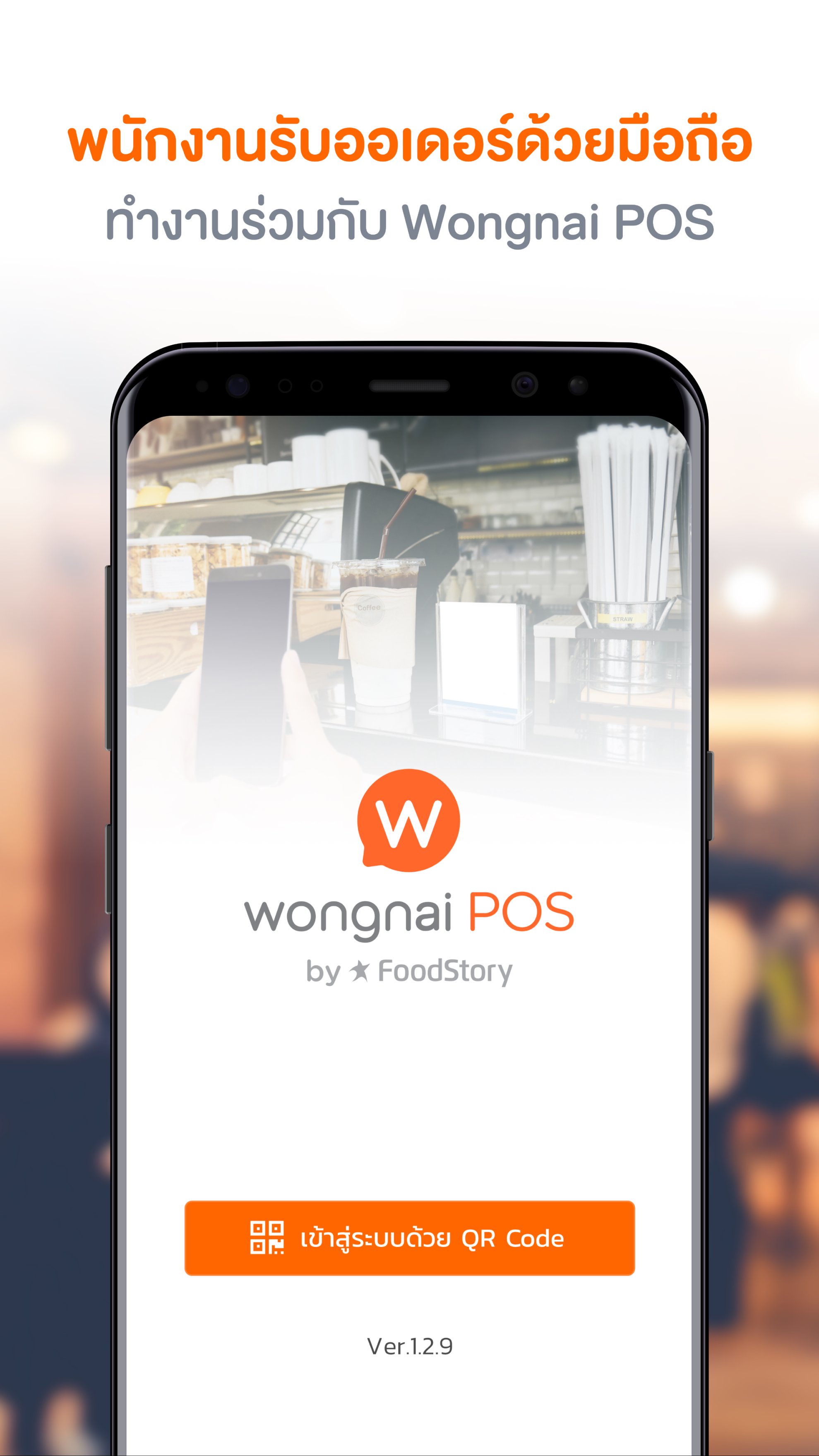 1. ดาวน์โหลดแอปพลิเคชั่น Wongnai POS Staff บนสมาร์ทโฟนสำหรับพนักงานหรือบริกรในร้าน