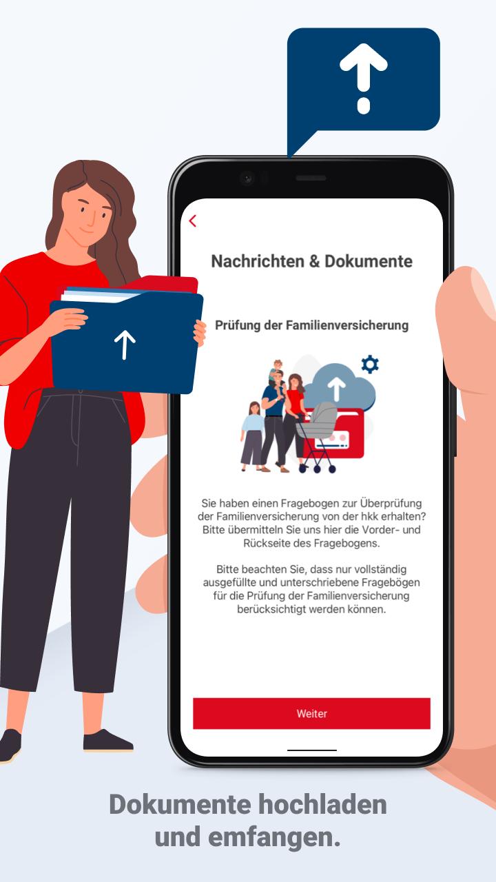 ดูแลเรื่องประกันของคุณอย่างสะดวกและปลอดภัย: ตัวอย่างเช่นส่งรายงานความเจ็บป่วยไปที่ hkk เปลี่ยนรายละเอียดการติดต่อของคุณหรือส่งเอกสารไปที่ hkk อย่างปลอดภัย