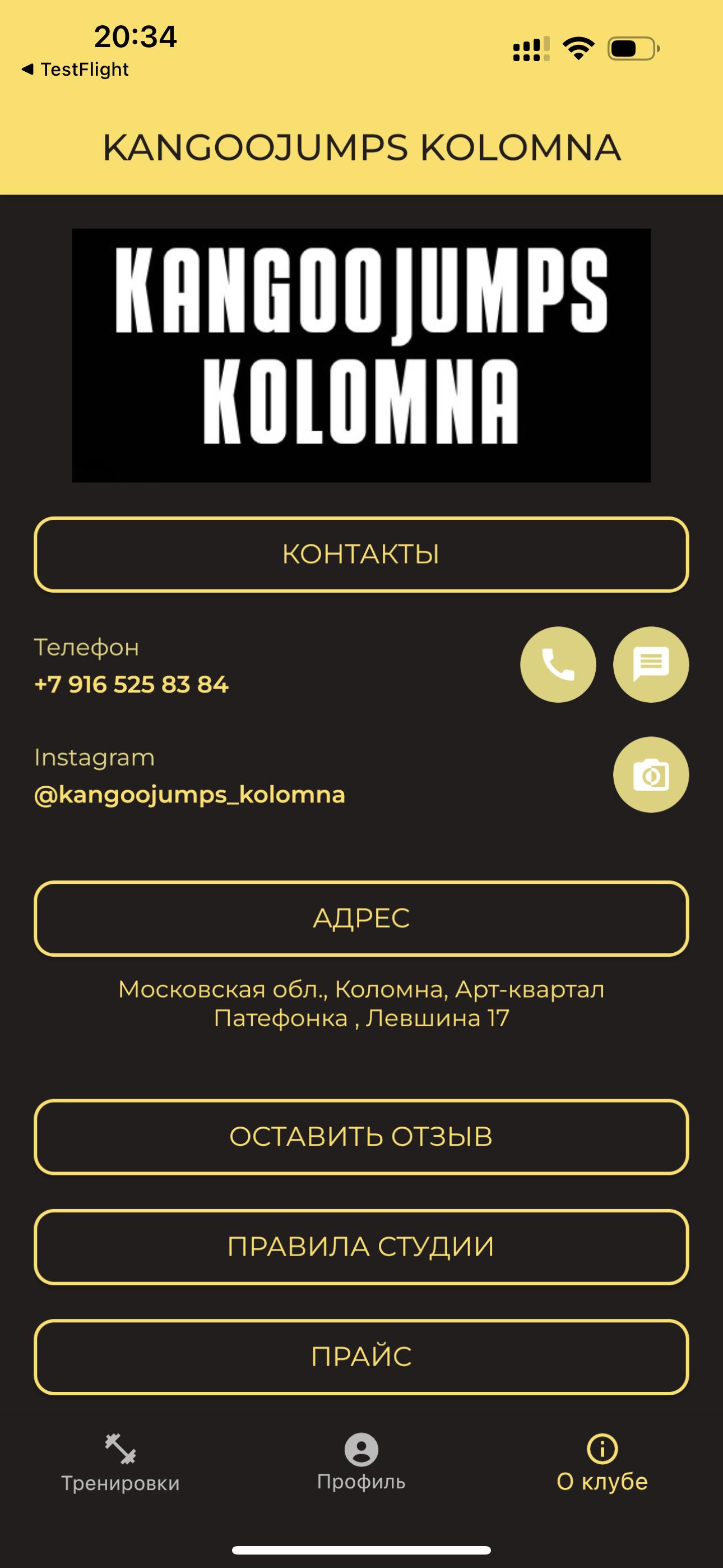 แอปพลิเคชั่นนี้สำหรับฟิตเนสคลับ KANGOOJUMPS KOLOMNA