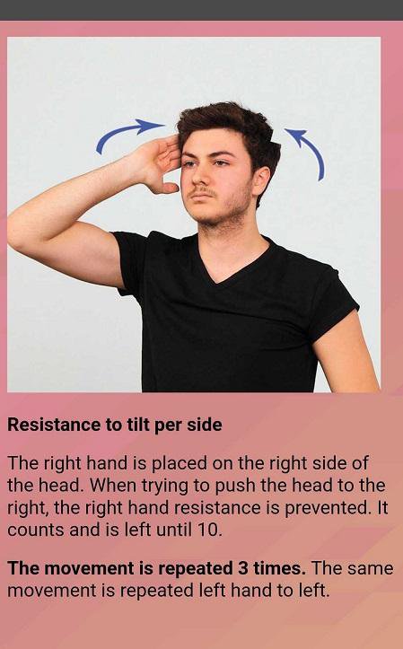 การเคลื่อนไหวเหล่านี้แสดงผลการรักษา ในคำอื่น ๆ การออกกำลังกายสำหรับอาการปวดคอไม่ก่อให้เกิดอันตรายใด ๆ ในทางกลับกันจะช่วยรักษาสภาพเช่นการยืดคอ, ตึงตอนเช้า, ไส้เลื่อนคอและโรคข้ออักเสบ