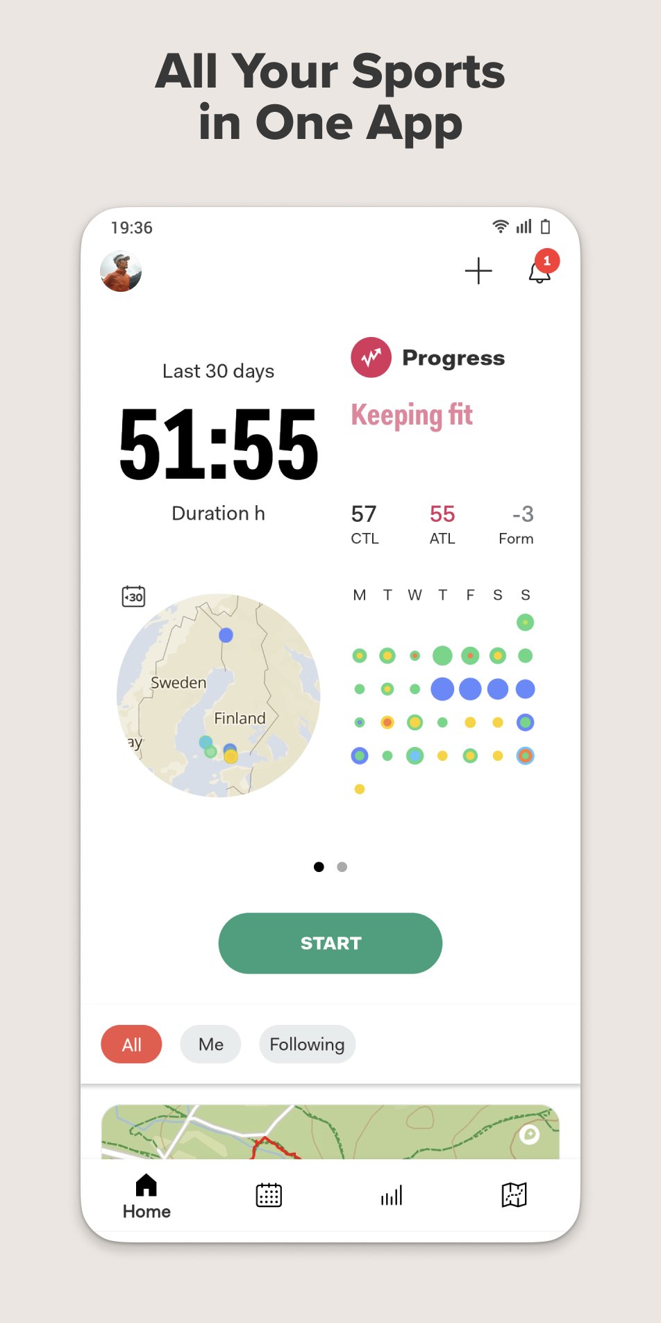ติดตามการฝึกซ้อมโดยใช้ GPS และแผนที่ทรงประสิทธิภาพ วิเคราะห์ทุกอย่างตั้งแต่การเผาผลาญแคลอรี่ไปจนถึงความเร็วและระดับความสูงโดยเฉลี่ย และตรวจสอบความคืบหน้าของเป้าหมายการออกกำลังกาย และเหนือสิ่งอื่นใดคือคุณไม่ต้องออกกำลังกายเพียงลำพัง เพราะSports Tracker เป็นแอปพลิเคชันติดตามการการออกกำลังกายแบบโซเชียล ทั้งยังเป็นบริการที่เป็นจุดเริ่มต้นของทุกอย่าง โดยคุณสมบัติโซเชียลจะช่วยให้คุณแชร์ความคืบหน้าในการออกกำลังกายและรูปถ่ายกับเพื่อน ๆ และผู้ติดตามได้ ทั้งยังสร้างแรงจูงใจให้คุณออกกำลังกายตามแผนที่วางไว้ด้วย