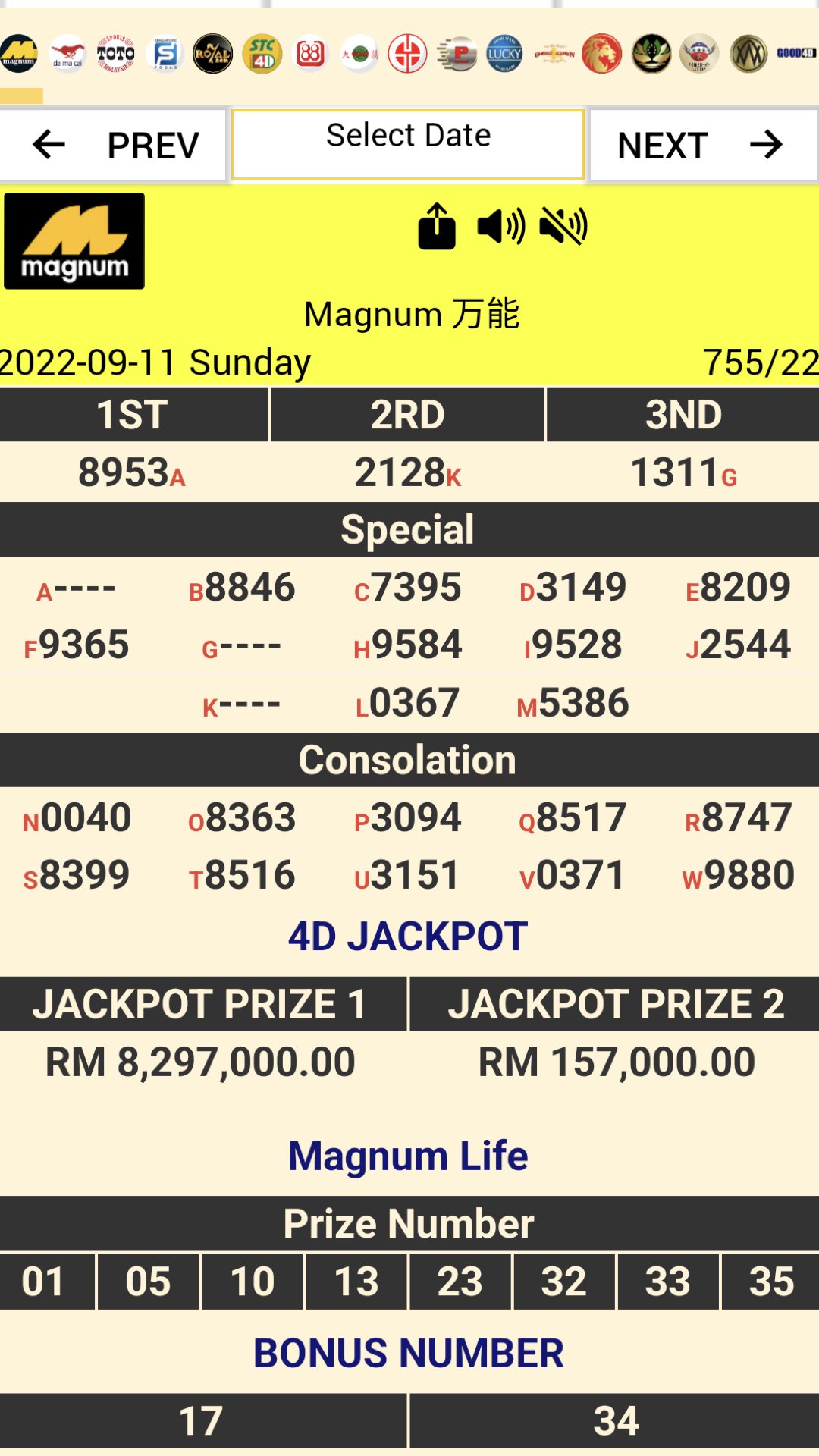 เราสนับสนุนผลลัพธ์ของมาเลเซียจาก Magnum, Sports Toto 4D/5D/6D/Jackpot, Damacai, Sabah, Sandakan และ Sarawak Cash