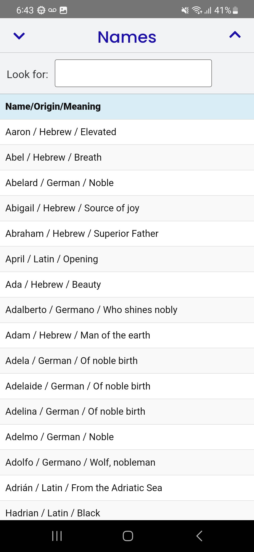 คุณเคยสงสัยหรือไม่ว่าอะไรอยู่เบื้องหลังชื่อของคุณหรือของคนอื่น? แอปพลิเคชันของเราช่วยให้คุณเข้าถึงพจนานุกรมชื่อหลายภาษาที่สมบูรณ์ซึ่งจะช่วยให้คุณสำรวจความหมายมากมายที่แต่ละชื่อมีอยู่ด้วย ตั้งแต่ชื่อดั้งเดิมไปจนถึงชื่อที่อยากรู้อยากเห็นมากที่สุด แคตตาล็อกของเราครอบคลุมวัฒนธรรมและภาษาที่หลากหลาย เพื่อให้คุณสามารถเรียนรู้เกี่ยวกับประวัติศาสตร์และสัญลักษณ์ที่ลึกซึ้งของชื่อเหล่านั้น