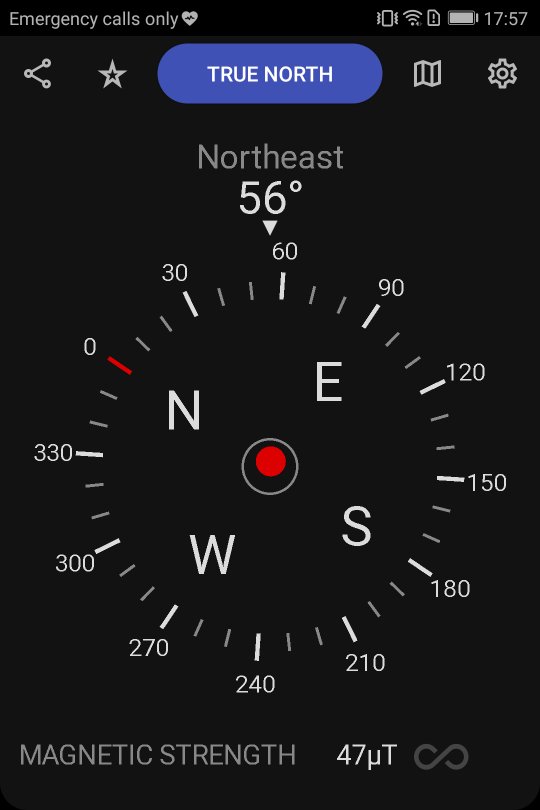 1. เข็มทิศที่มีโหมดทิศเหนือจริง (ต้องเข้าถึงตำแหน่งอุปกรณ์)