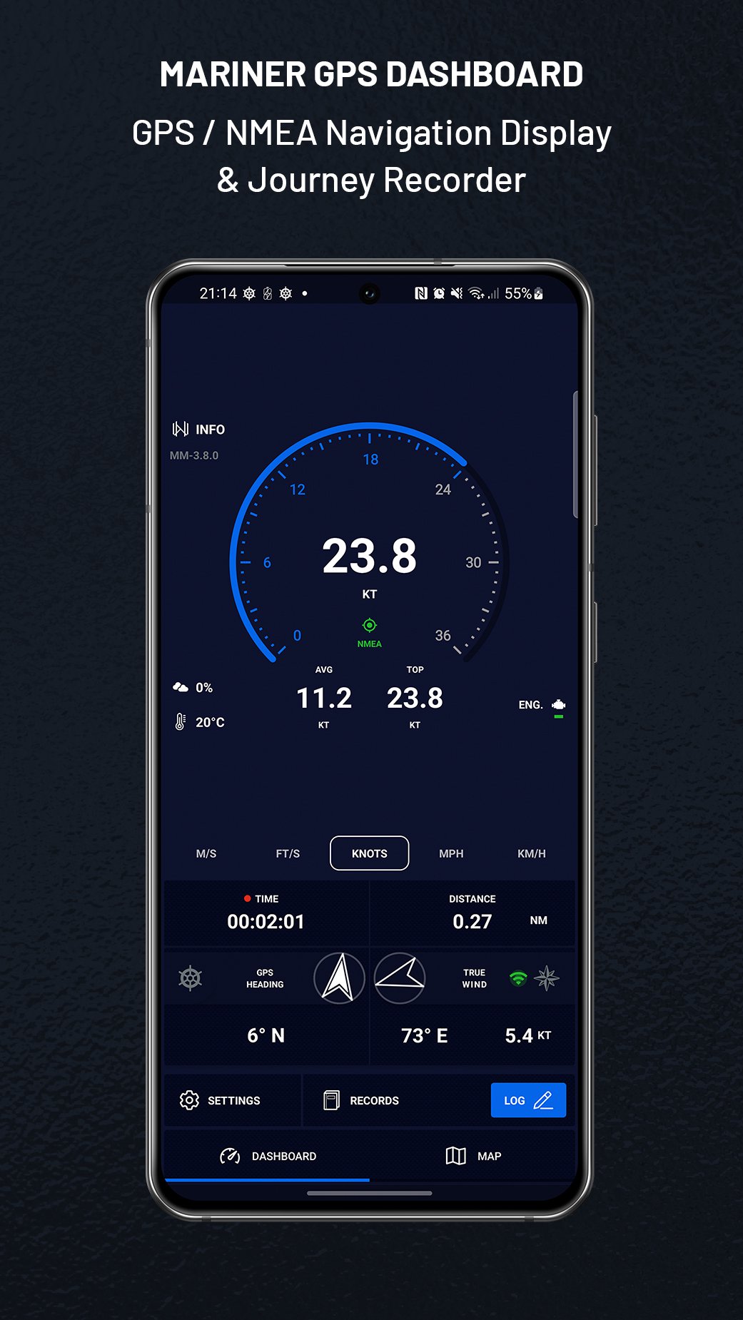 • 🎯 การติดตามที่แม่นยำเป็นพิเศษ: สัมผัสกับความแม่นยำสูงสุดในการอ่านความเร็วและสถิติประสิทธิภาพ ทำให้มั่นใจได้ว่าข้อมูลของคุณเชื่อถือได้และแม่นยำด้วยมาตรวัดความเร็วทางทะเลของเรา