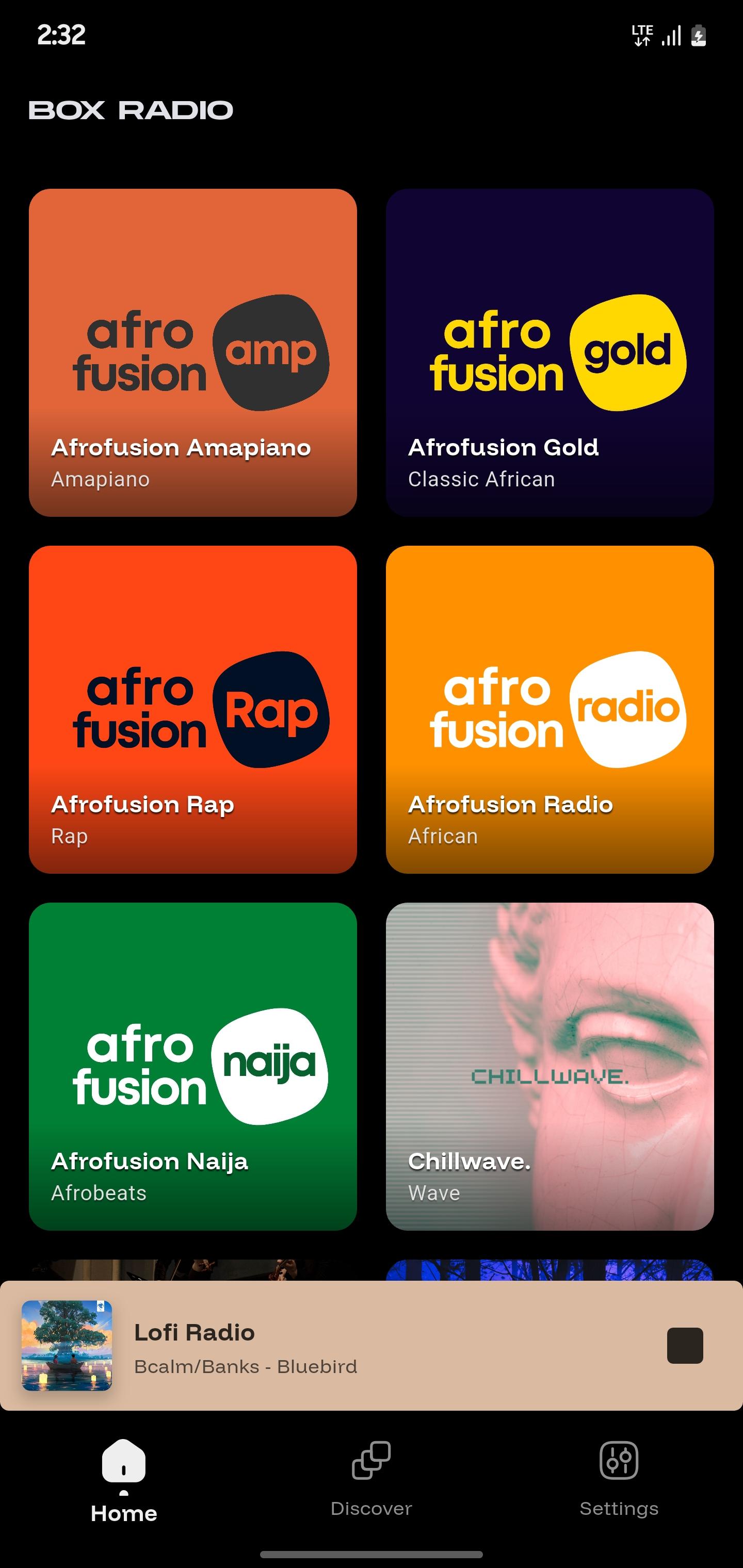 รับฟังสถานีวิทยุเพลงคุณภาพสูงได้ทุกที่ทุกเวลาด้วย Box Radio ขับเคลื่อนโดย Ghanacloud Limited เรามอบเพลงและความบันเทิงแบบต่อเนื่องจากสถานีฟรีกว่า 30 สถานี ครอบคลุมแนวเพลงยอดนิยมทั่วโลก