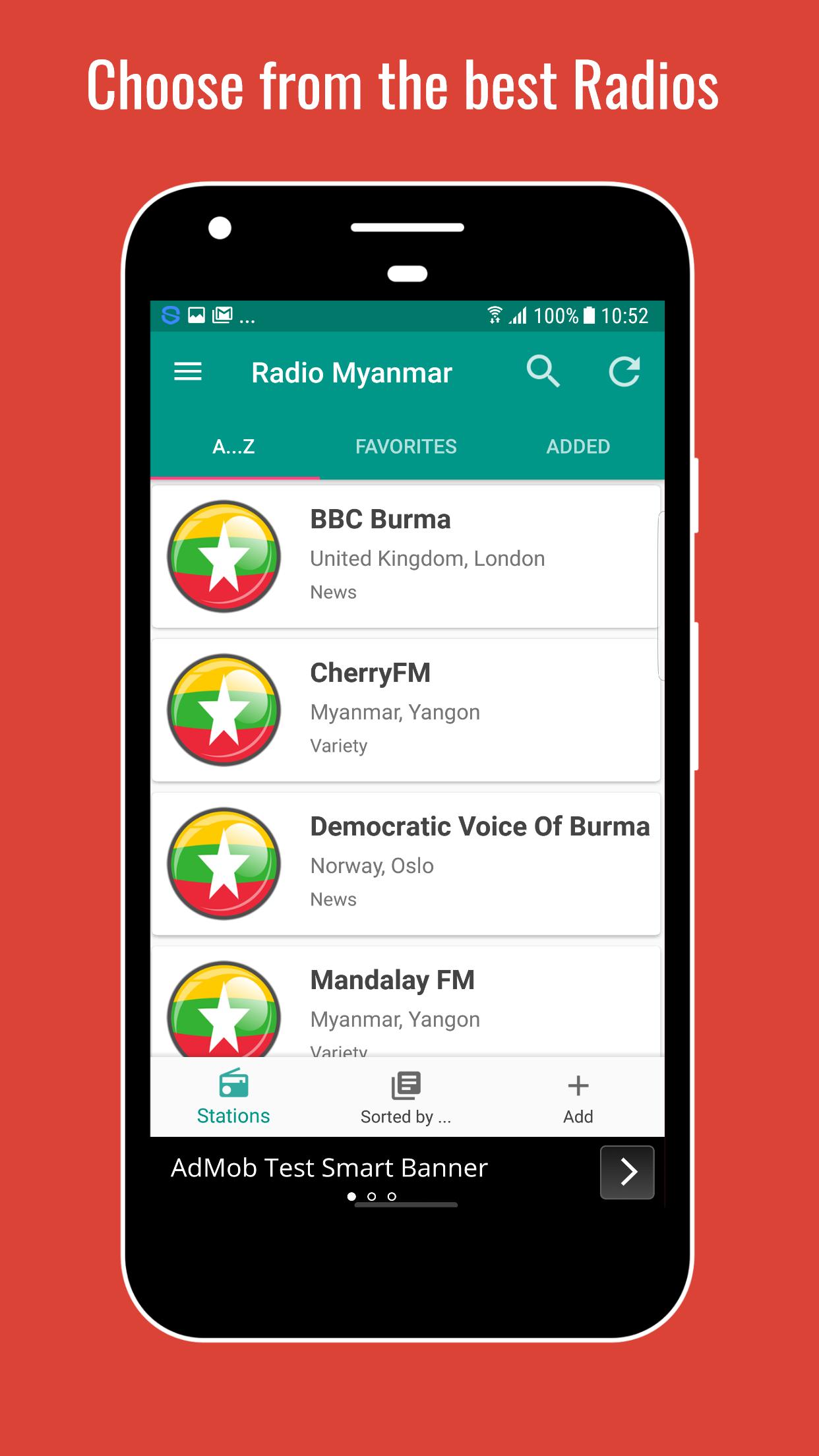 📻 ปรับแต่งวิทยุสดของพม่า ซึ่งรวมอยู่ในแอปพม่านี้: