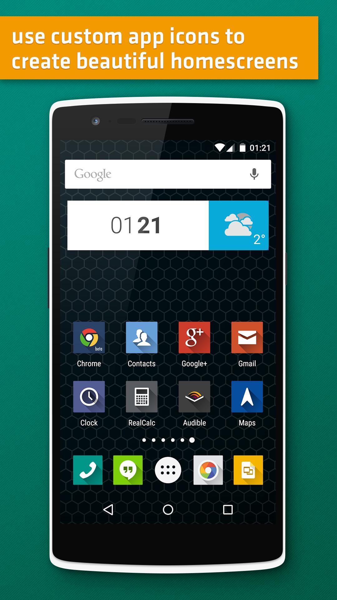 มีปพลิเคชันที่ดี แต่บางส่วนของพวกเขามีไอคอนที่ไม่ให้ที่ดีหรือไอคอนที่เพียงจะไม่พอดีกับรูปแบบหน้าจอที่บ้านของคุณ เพียงแค่เลือกไอคอนที่แตกต่างจากของคุณหนึ่งในพันชุดไอคอนที่มีอยู่ใน Play สโตร์