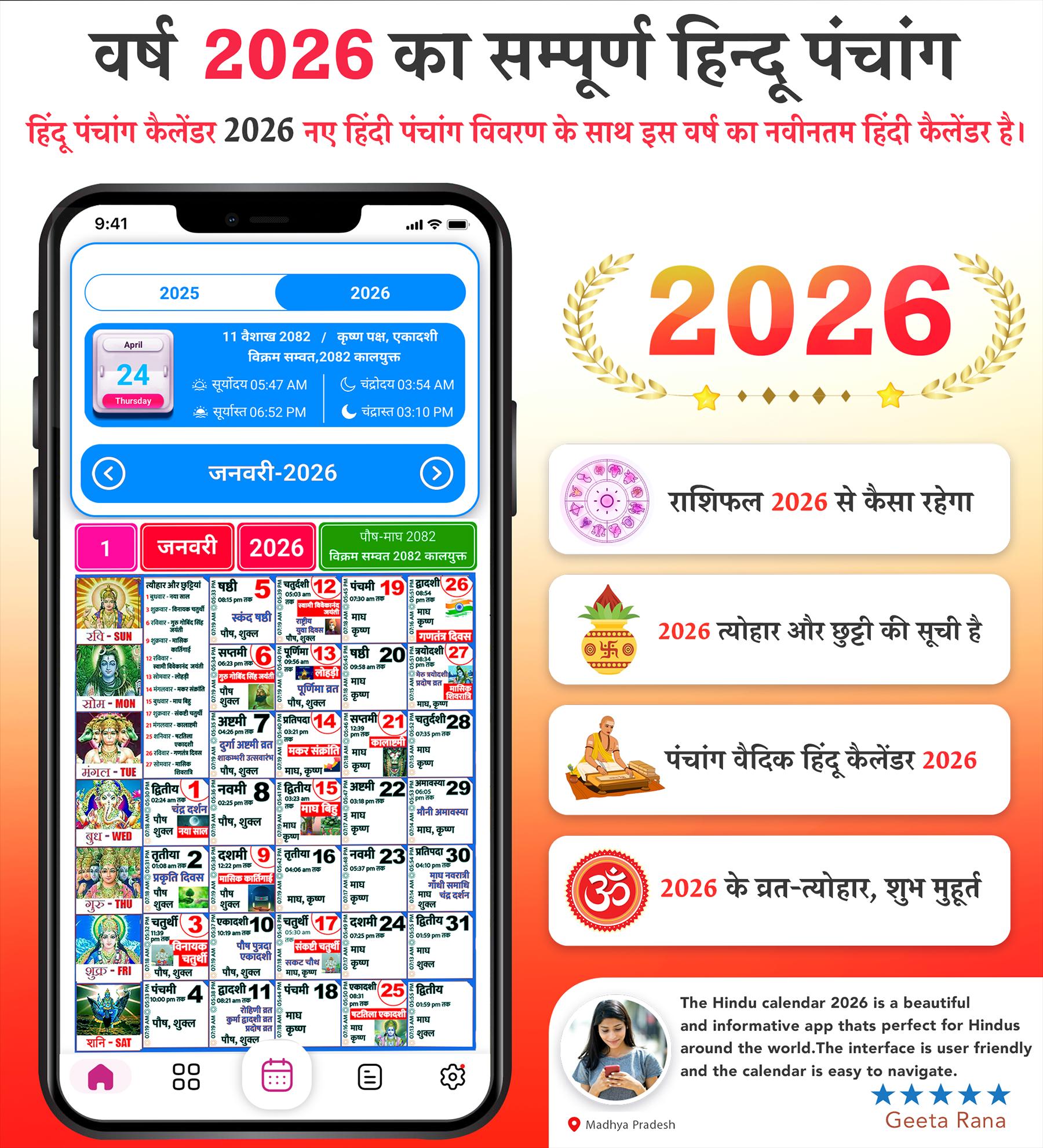 แอปปฏิทินฮินดู 2026 เป็นแอปปฏิทินปฏิทินฟรีทั่วโลก