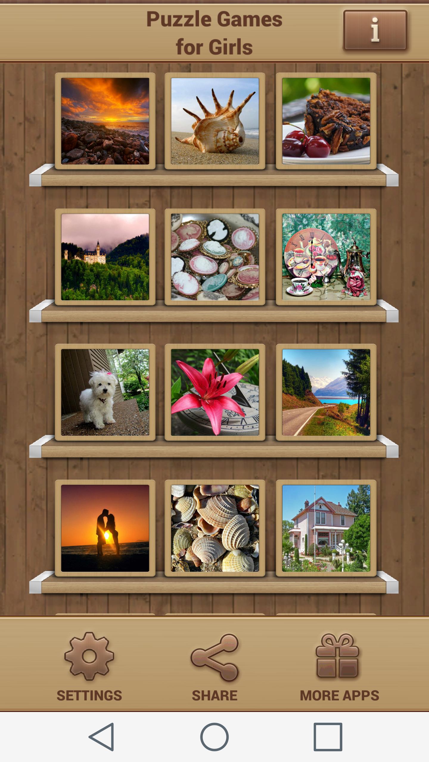 Puzzle Games for Girls offers the following options: