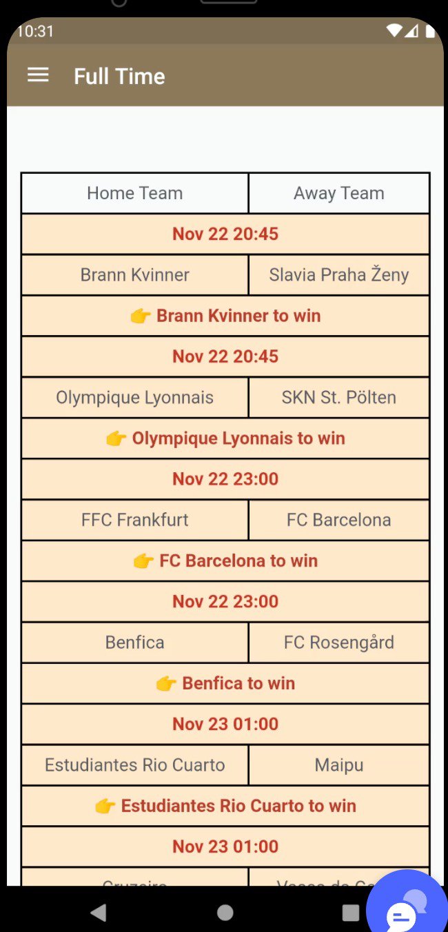 แอปนี้สร้างขึ้นโดยทีมงานที่หลงใหลในกีฬาฟุตบอลระดับโลกอย่างใกล้ชิด และแบ่งปันข้อมูลเชิงลึกเกี่ยวกับการแข่งขันที่แม่นยำทุกวัน การทำนายทั้งหมดอ้างอิงจากการวิเคราะห์การแข่งขันอย่างละเอียด ฟอร์มการเล่นของทีมในปัจจุบัน และสถิติโดยละเอียด