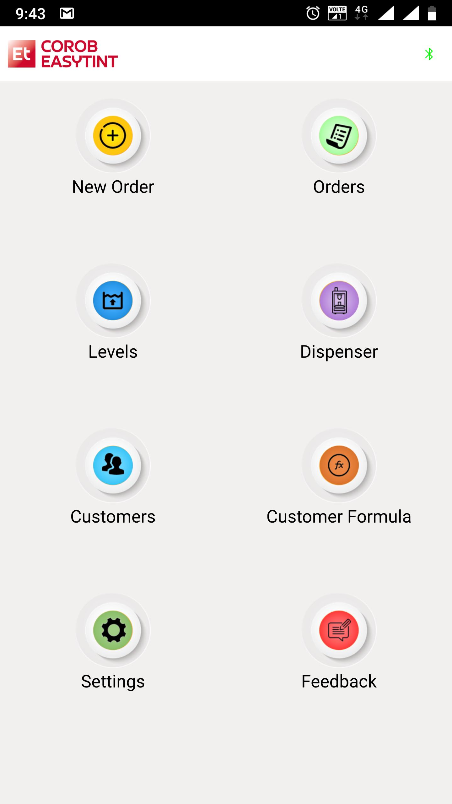COROB EASYTINT เป็นแอพพลิเคชั่นจุดขายที่สมบูรณ์ซึ่งจัดการกิจกรรมการย้อมสีทั้งหมดในเครื่องจ่าย COROB 5G โดยใช้สมาร์ทโฟนหรือแท็บเล็ต