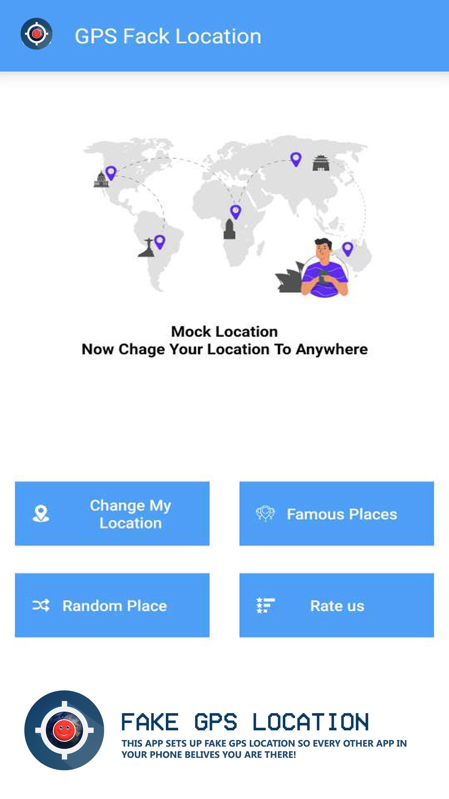 ตอนนี้เรากำลังนำเสนอแอปพลิเคชั่นระบุตำแหน่ง GPS ปลอม คุณต้องการเปลี่ยนตำแหน่งปัจจุบันของคุณ เพื่อให้แอปนี้ดีที่สุดสำหรับคุณ เราขอเสนอแอปพลิเคชันตำแหน่งปลอม การใช้แอพนี้ตำแหน่งแผนที่แบ่งของคุณจะเปลี่ยนไปหากคุณต้องการตั้งค่าตำแหน่งของคุณในลอนดอนดังนั้นคุณเพียงแค่เลือกตำแหน่งและตั้งเป็นที่อยู่จำลอง การใช้แอปตำแหน่ง Gps ตั้งค่าตำแหน่งโทรศัพท์ของคุณไปที่ใดก็ได้ในโลก ตำแหน่งของคุณปลอดภัย แอปอื่นตรวจไม่พบตำแหน่งของคุณ ดังนั้น GPS จึงไม่สามารถติดตามข้อมูลของคุณได้