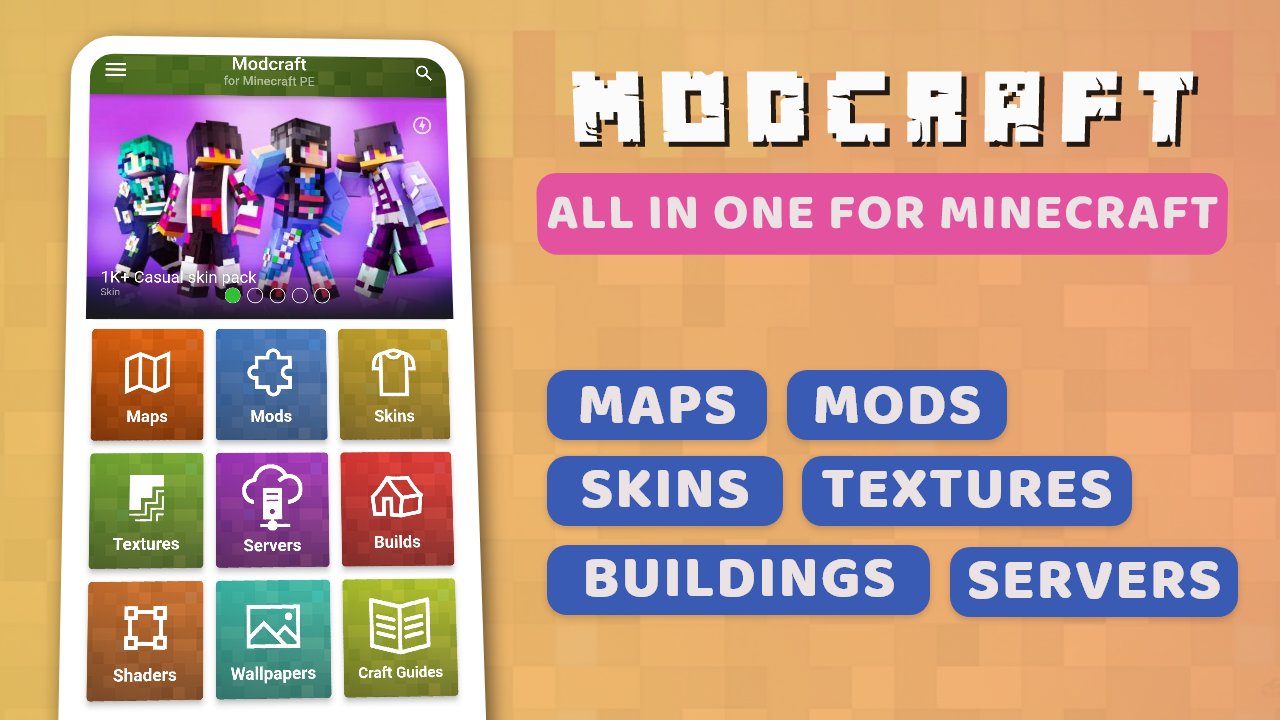 ModCraft เป็นตัวเปิดแอปพลิเคชั่นฟรีและใช้งานง่ายและตัวจัดการส่วนเสริมสำหรับ Minecraft PE ที่คุณจะได้พบกับแผนที่ล่าสุด ม็อด พื้นผิว เมล็ดพืช เซิร์ฟเวอร์ วอลล์เปเปอร์ สกิน ส่วนเสริม และคู่มือการประดิษฐ์
