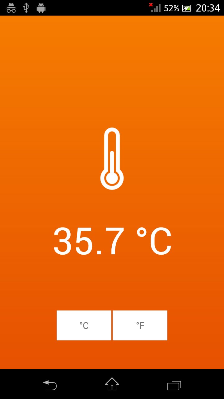 การใช้เครื่องวัดอุณหภูมิช่วยให้คุณสามารถวัดอุณหภูมิห้องได้อย่างถูกต้อง (อุณหภูมิห้องอุณหภูมิภายนอก) โดยใช้เซ็นเซอร์ในโทรศัพท์ของคุณเอง แอพพลิเคชั่นนี้ช่วยให้สามารถแสดงอุณหภูมิในองศาเซลเซียสหรือเอฟเพื่อให้คุณสามารถแปลงได้