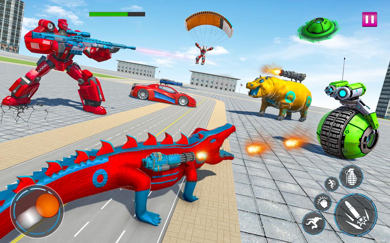 Bu araba robot oyunu 2021'de robot savaş makinenizi seçin ve uzaylı güçlerin büyük savaşlarına atlayın. Kedi robot arabasına mı yoksa timsah robot bisikletine mi dönüşeceğiniz size kalmış. Bu, uzay robotlarına karşı robot savaşlarını dönüştürmek için ek modlara sahip su aygırı robot oyunudur. Dünyayı kurtarmak için tavşan robot dönüşüm oyununda ve kaplumbağa robot dönüşüm oyununda son robot savaşında savaşın. Çok hayvanlı robot oyunlarının cesur savaşçısı olmak için robotunuzu timsah robotuna ve kedi robotuna dönüştürmeyi öğrenin. Bu araba robot oyunu, timsah robotu dönüştürme oyunları ve robot atış oyunları sevenler için özel olarak tasarlanmıştır.