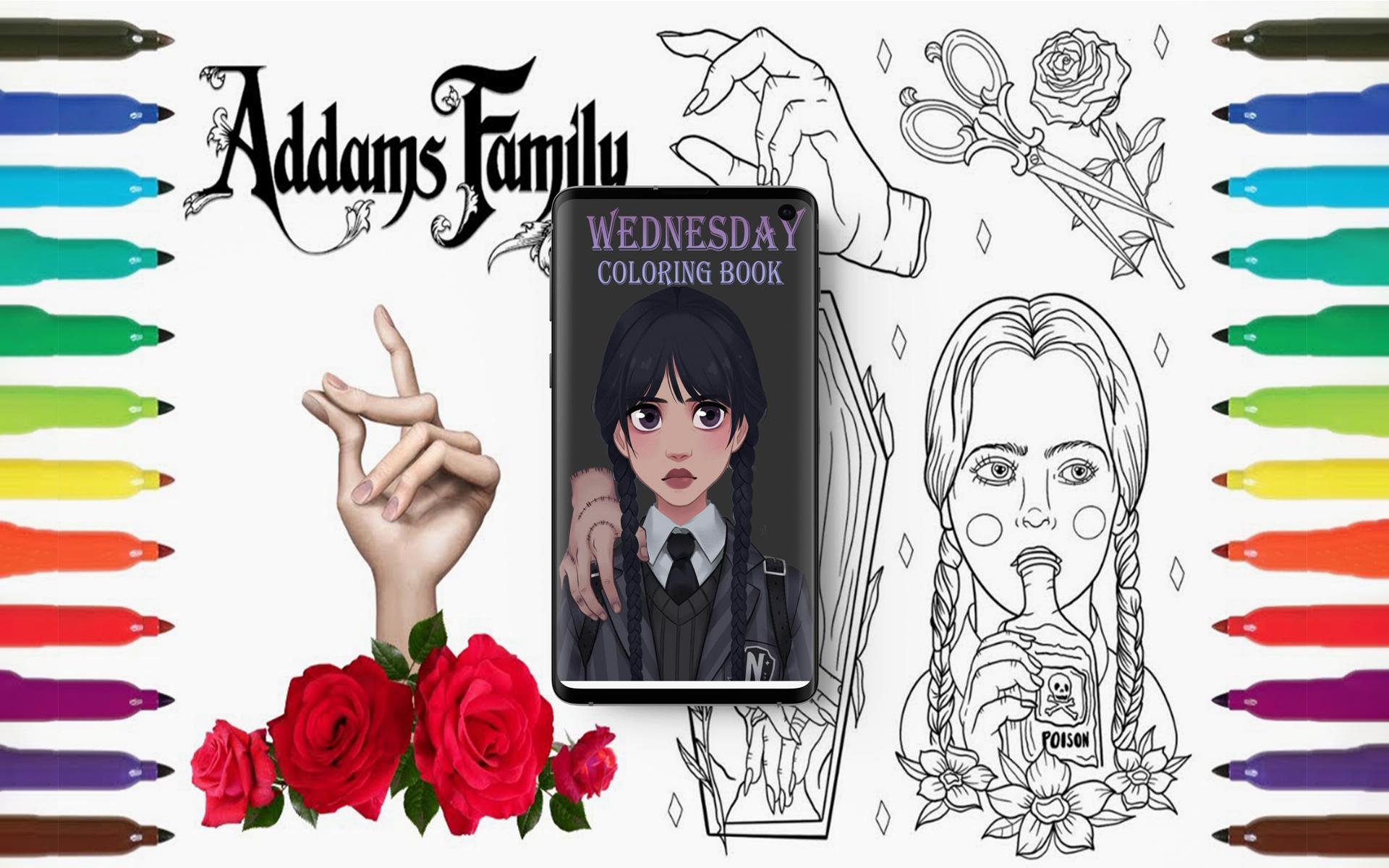 Çarşamba Boyama Oyunu ile tanışın - sevilen Çarşamba çizgi filminden görüntülerle yaratıcılığınıza ve renklendirme becerilerinize ilham verecek android uygulaması.