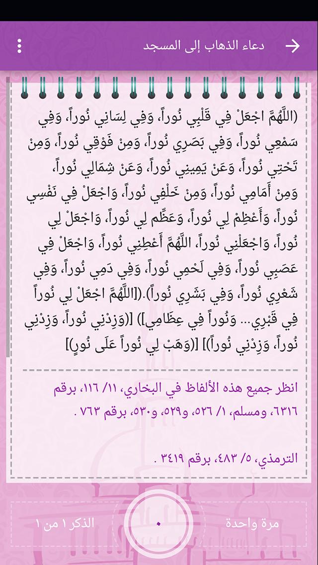 - يحتوي كل ذكر علي سند الحديث الخاص به أو السورة القرآنية وفضل الذكر