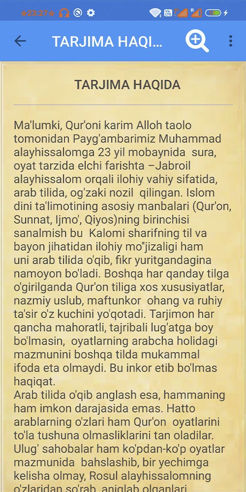 Iqbol geliştiricisinden gelen Qur'oni Karim tarjimasi, geçmişte Android systerm üzerinde çalışıyor.