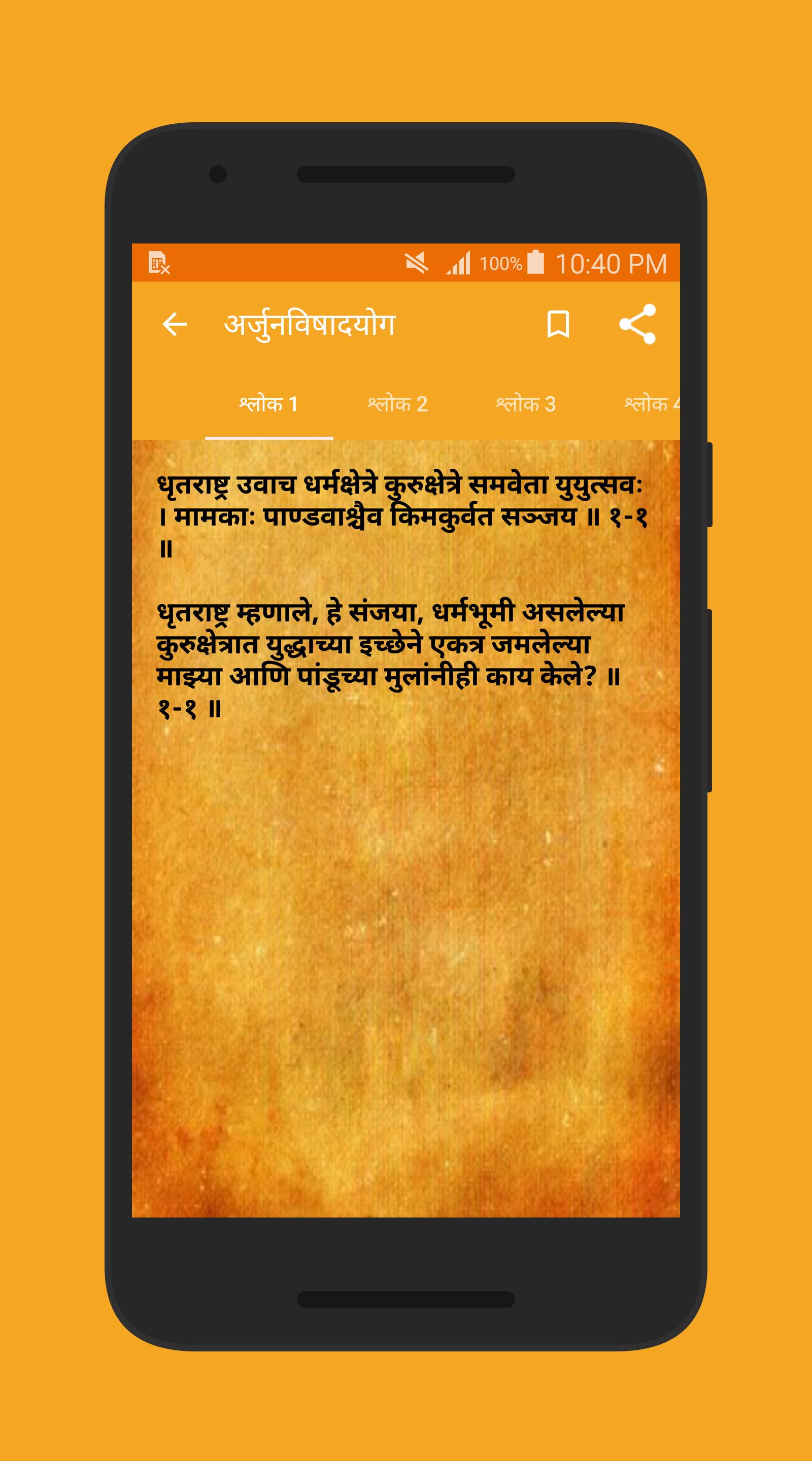 Banaka geliştiricisinden gelen Bhagavad-Gita in Marathi, geçmişte Android systerm üzerinde çalışıyor.