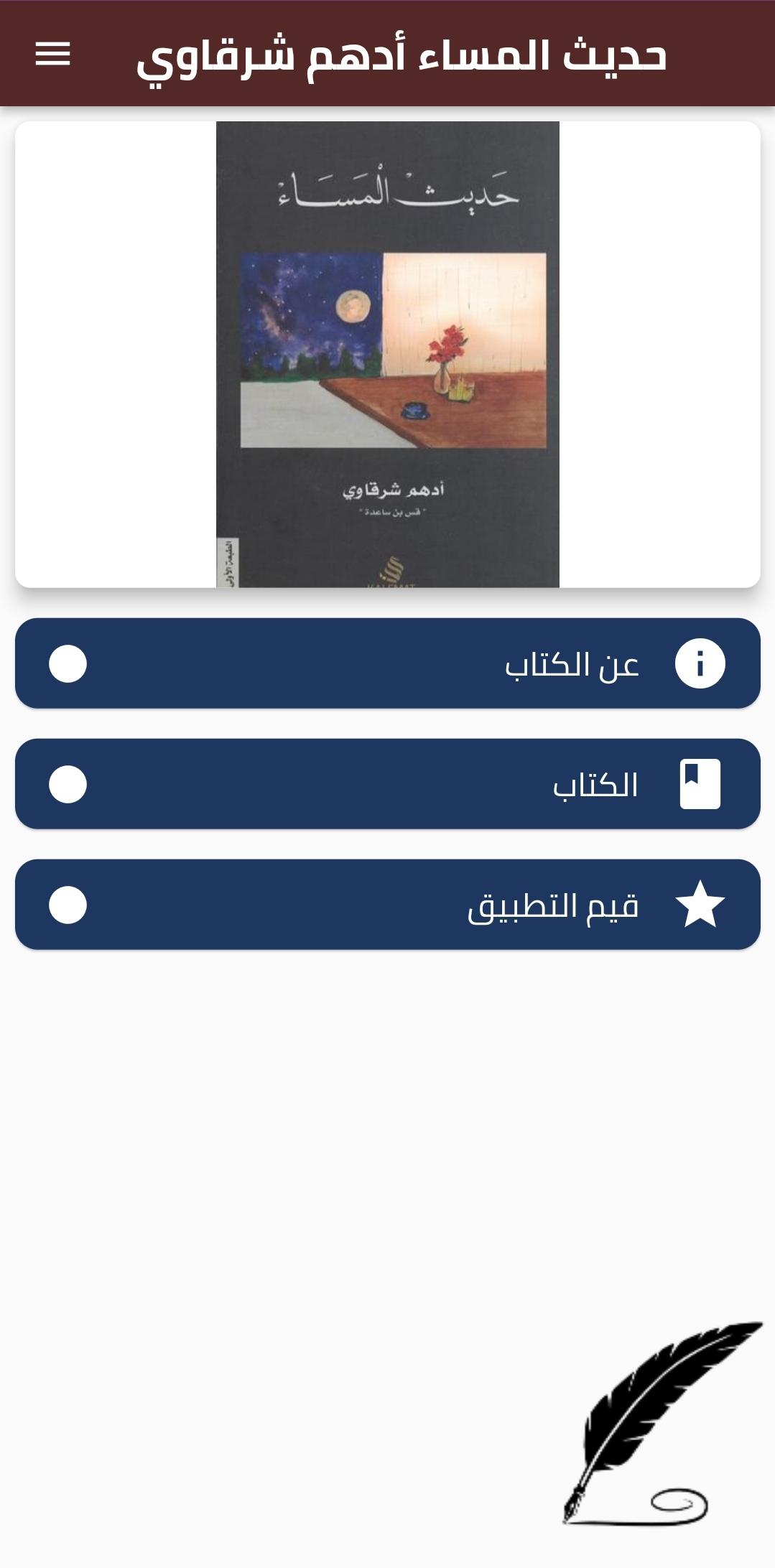 حمل التطبيق الان ونتمنى لك قراءة مميزة لكتاب حديث المساء لأروع الكتاب أدهم الشرقاوي