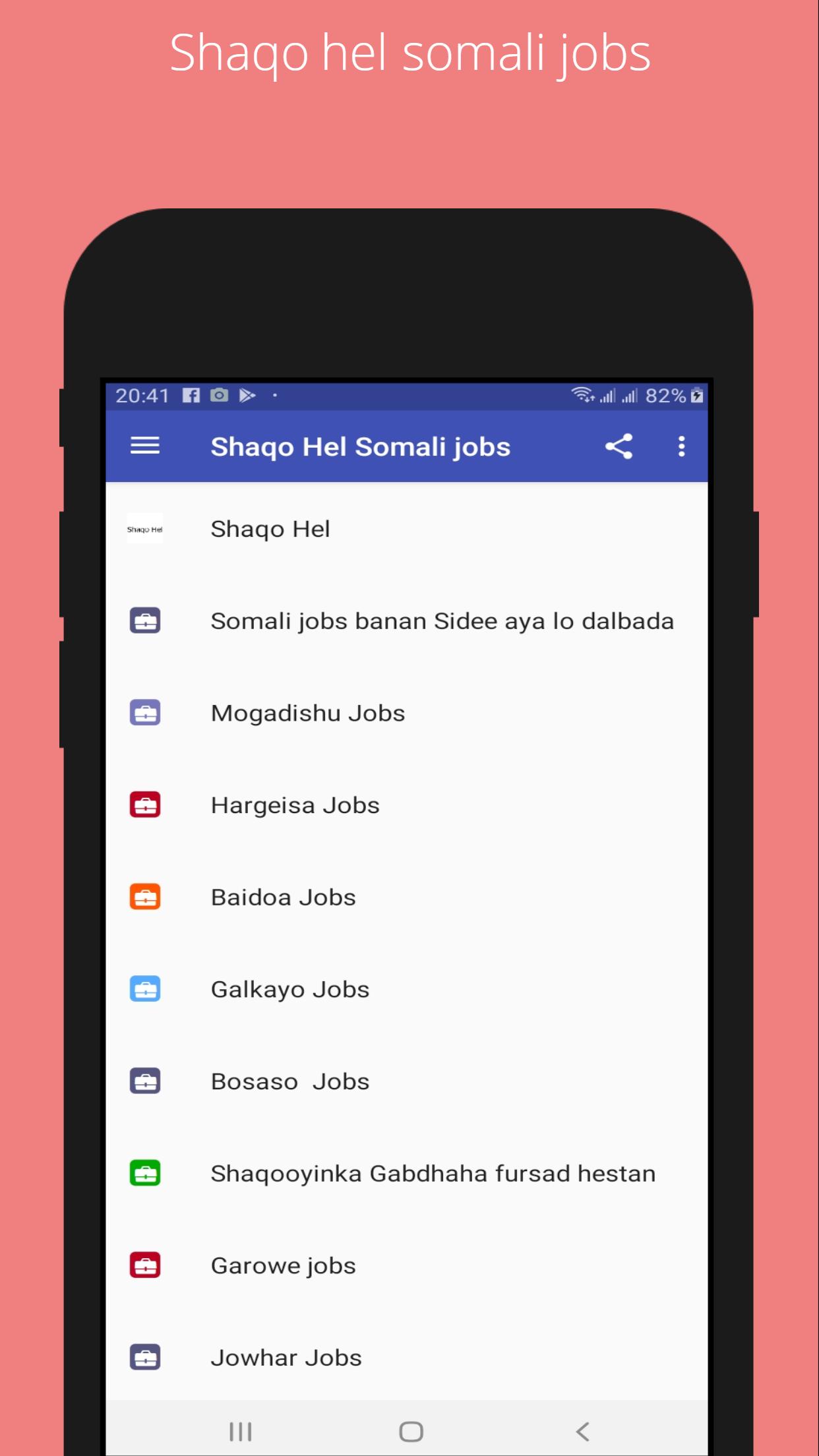App-ka shaqo hel Somali jobs waxaad kala soco kartaa shaqooyinka u danbeyey ee degaanada somalida