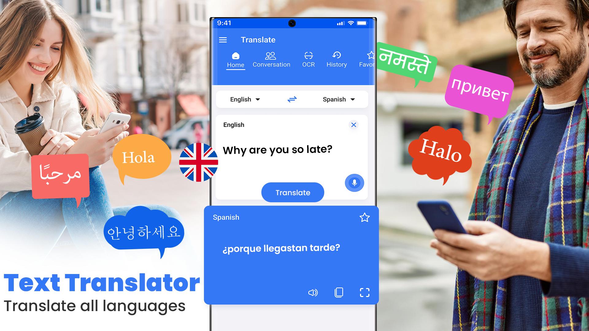 Tercüman Uygulaması, kesintisiz konuşmadan metne dil alışverişine izin verir. Gerçek zamanlı kelime çevirisi, cümleler ve yazılı içerik sunan, dünya çapında tanınan ücretsiz bir dil çevirmenidir. Ek olarak, dil çevirisi uygulaması metin ve sesli çeviriyi destekleyerek diğer ülkelerdeki insanlarla iletişim kurmayı kolaylaştırır.