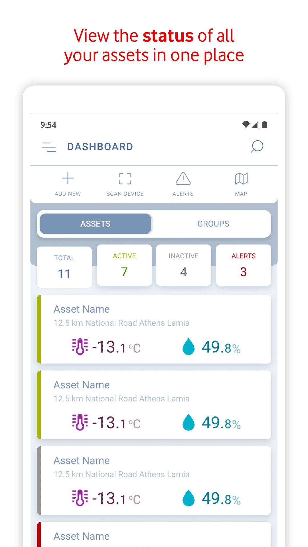 Vodafone Business Temperature Tag, varlıklarınızı, stoğunuzu veya iş yerinizi takip etmenizi sağlayan akıllı bir sıcaklık ve nem izleme çözümüdür.
