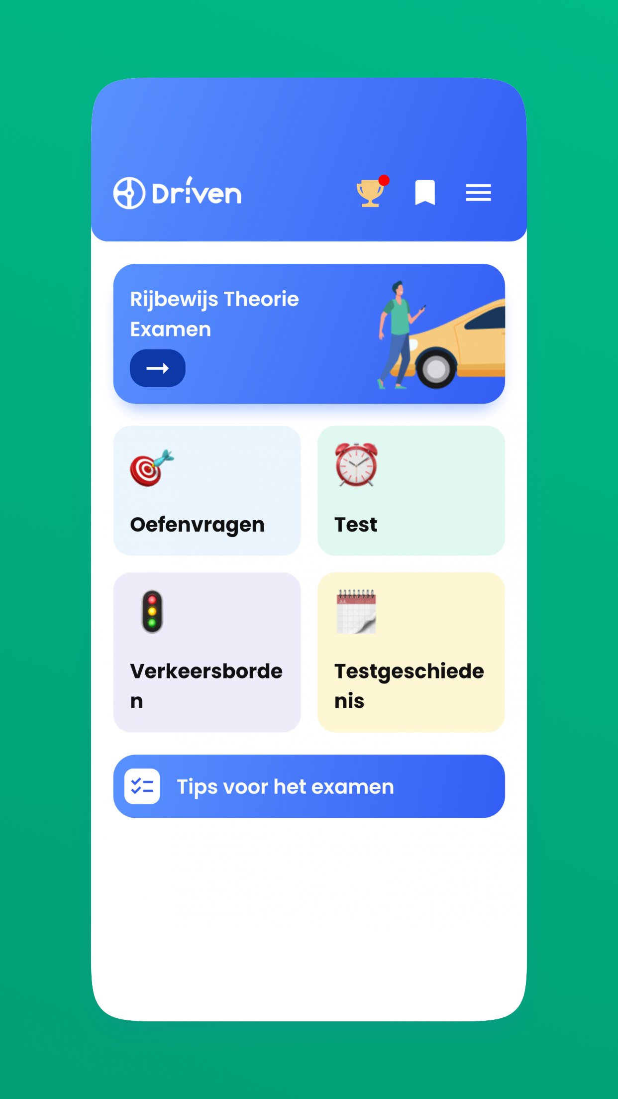 Eğlenceli uygulamamızla, alıştırma soruları, deneme sınavı ve araba teorinizi geçmek için bilmeniz gereken her şey hakkında ayrıntılı videolar ile sınavınız için zahmetsizce pratik yapabilirsiniz.
