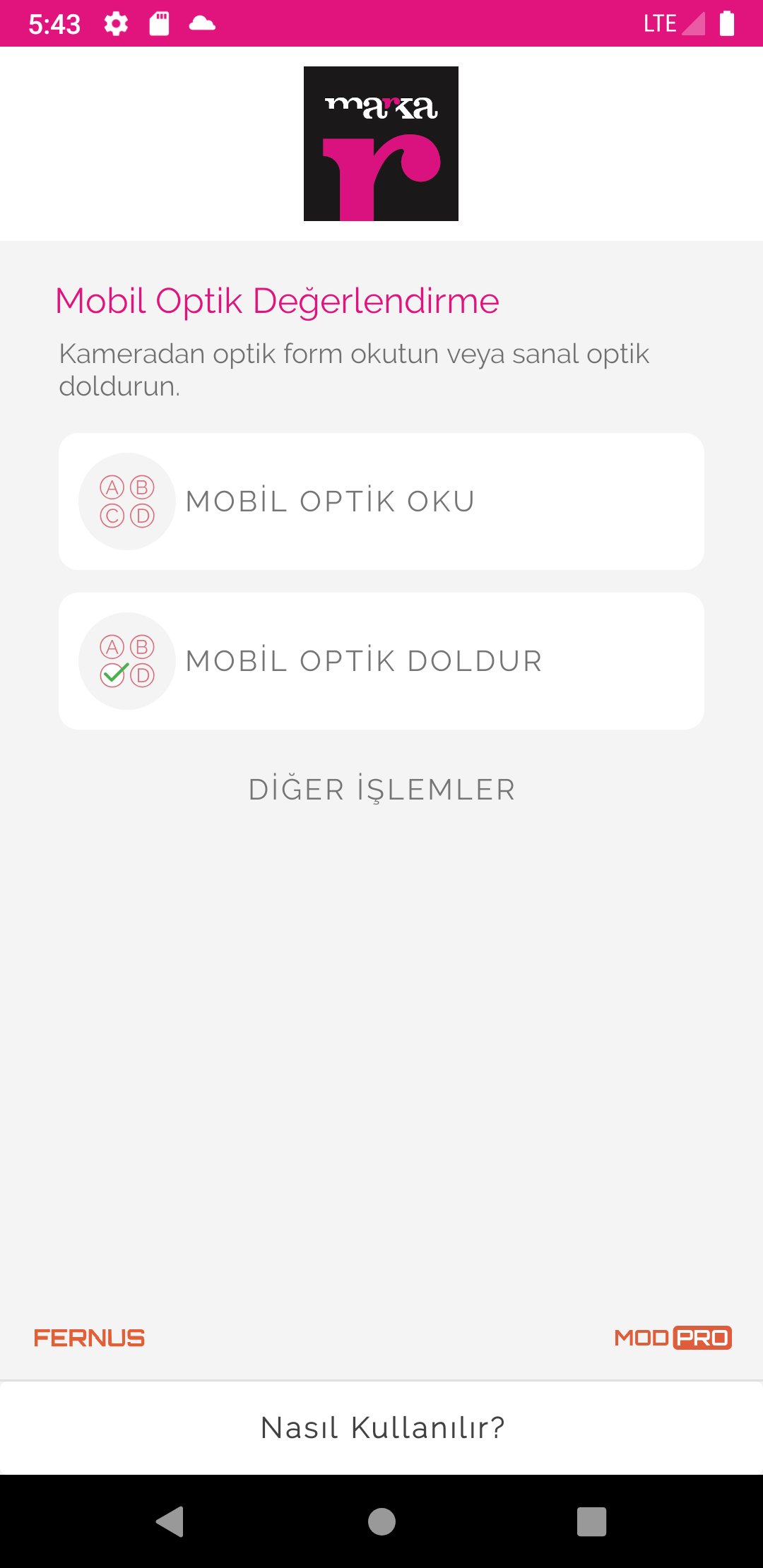 FERNUS EĞİTİM TEKNOLOJİLERİ A.Ş. geliştiricisinden gelen Marka Optik Okuma, geçmişte Android systerm üzerinde çalışıyor.