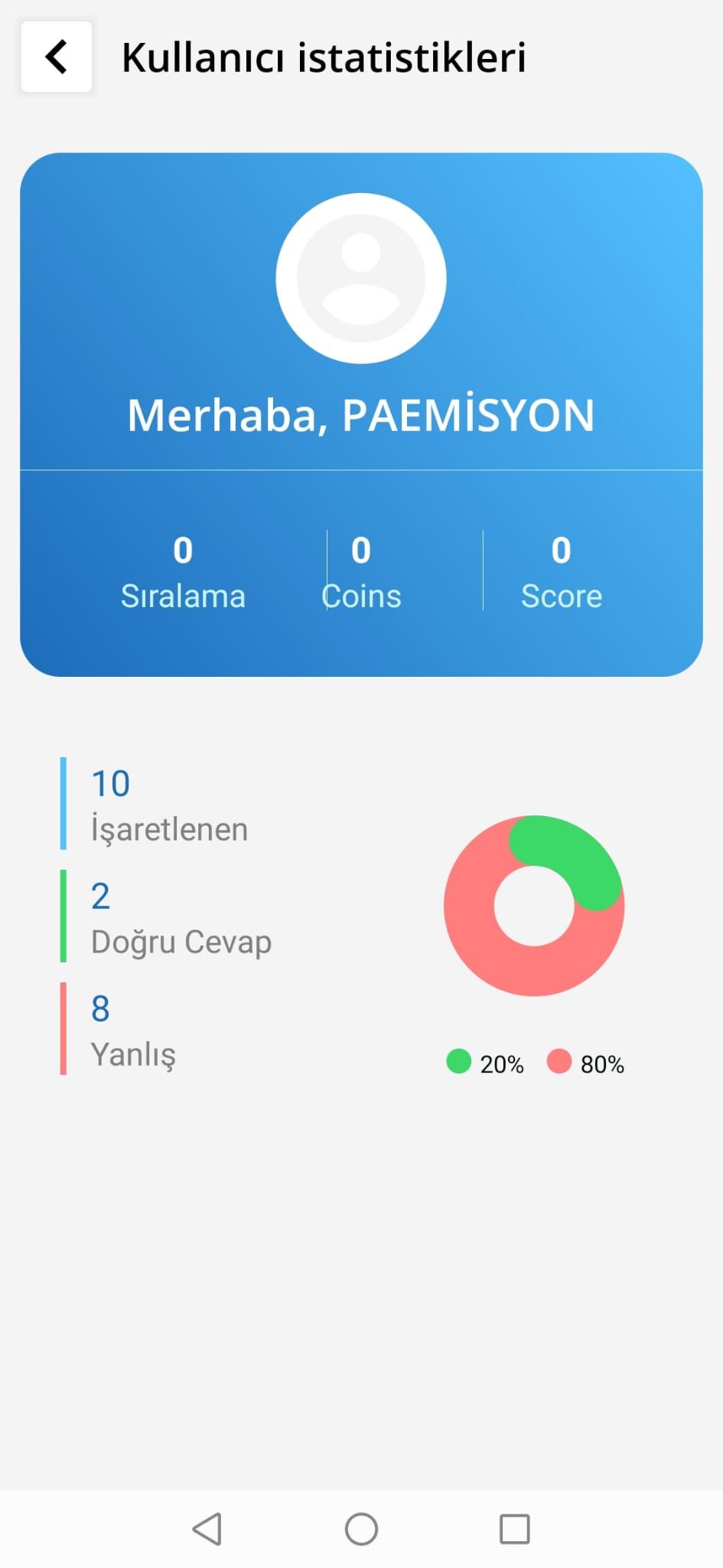● Toplam çözdüğünüz soruyu, Bu soruların kaçını doğru, kaçını yanlış yaptığınızı istatiksel olarak görebilirsiniz.