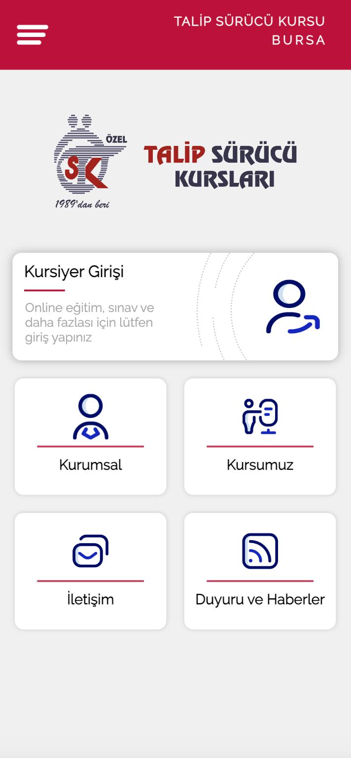 Talip Sürücü Kursu Mobil Uygulamasıdır. Kursiyerler İçin Online Eğitim ve Sınav İmkanı Sunar.