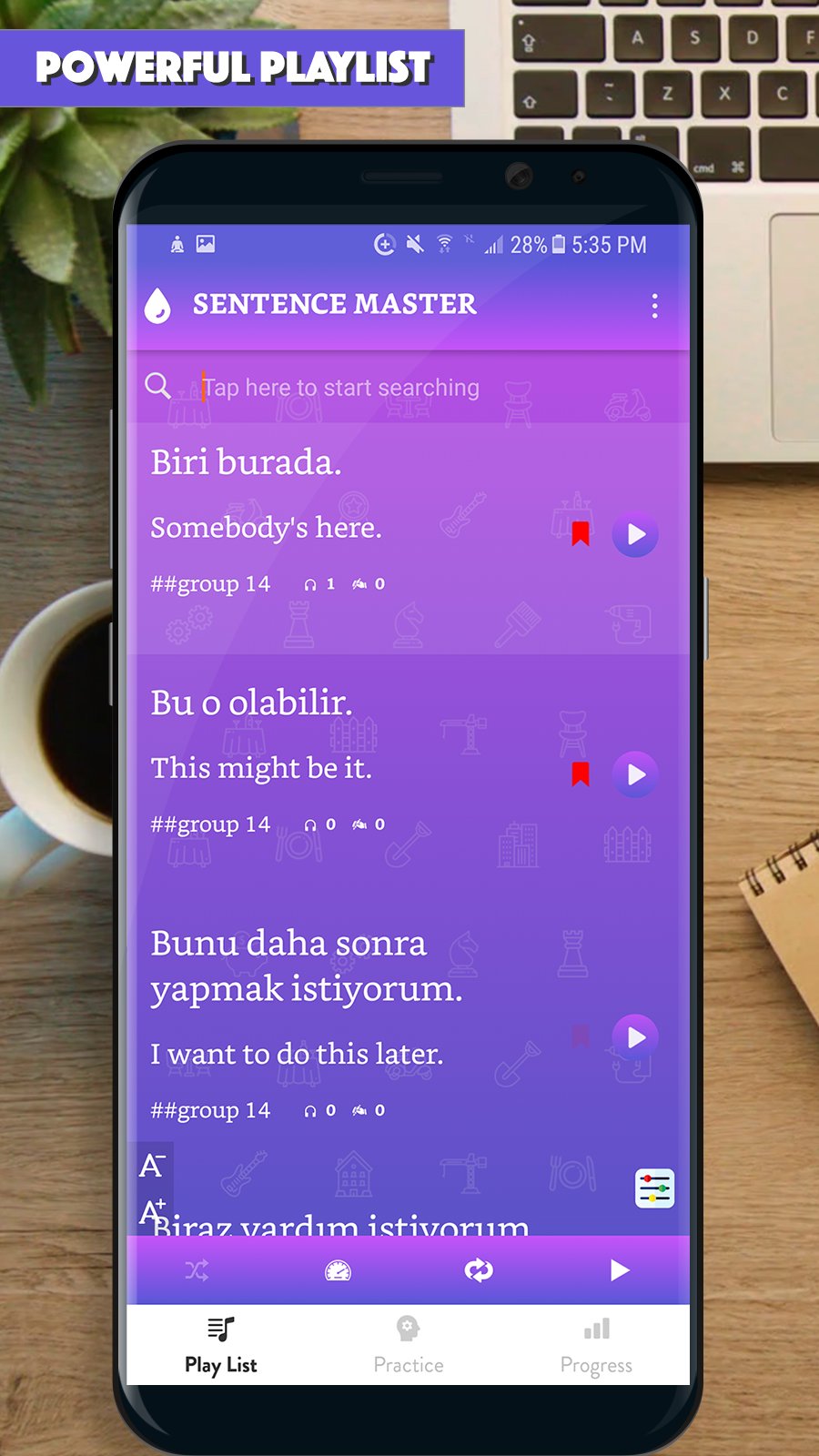 Language Learning Studio geliştiricisinden gelen Turkish Sentence Master, geçmişte Android systerm üzerinde çalışıyor.