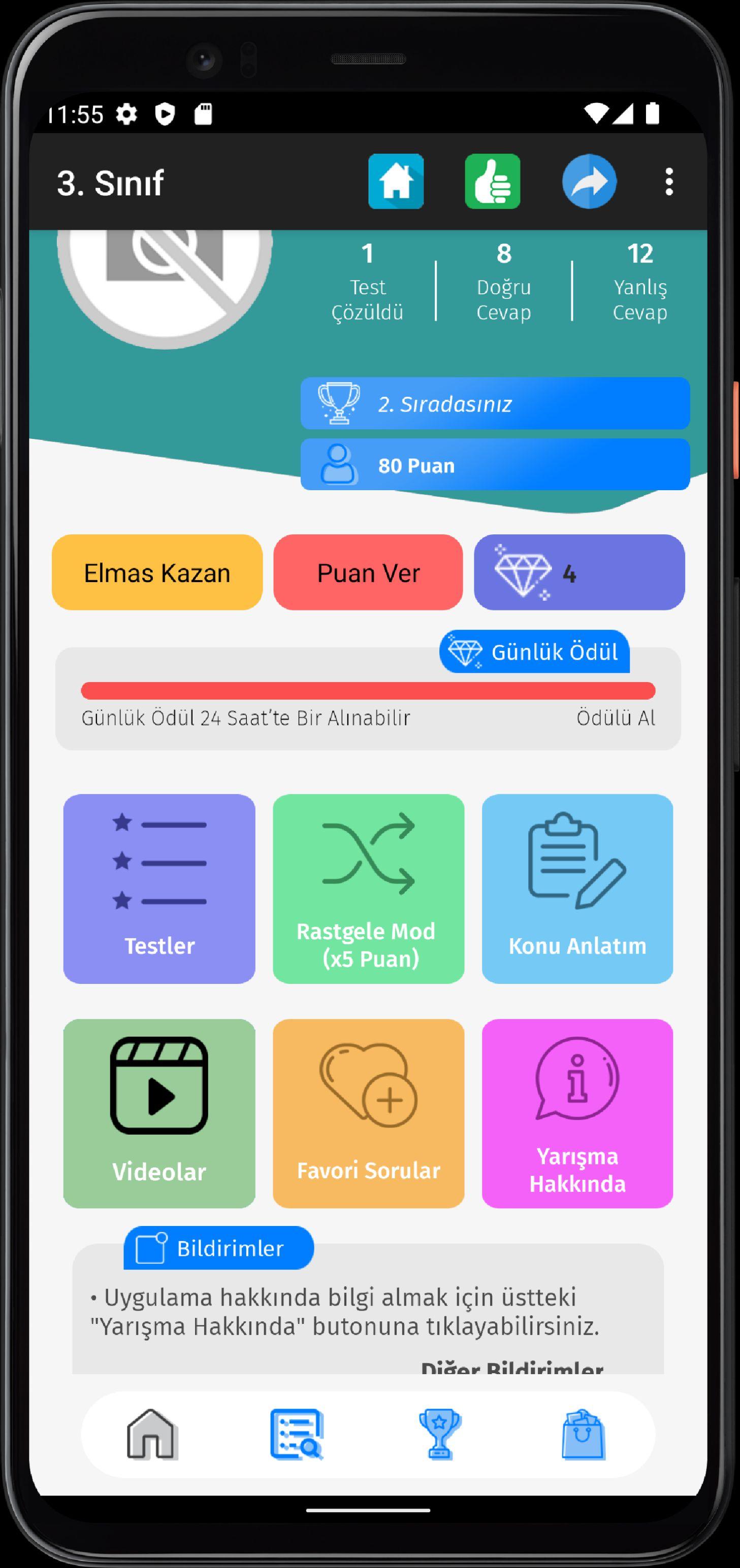 💥 Çözdüğünüz testlerde puanlar kazanarak liderlik yarışına katılabilirsiniz ve böylelikle eğlenerek ders çalışabilirsiniz.