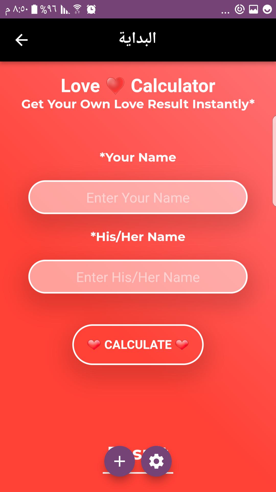 وحاسبة اختيار مقياس الحب ليعطي الثقة بين الحبيبين في تطبيق اختبار حاسبة مقياس الحب