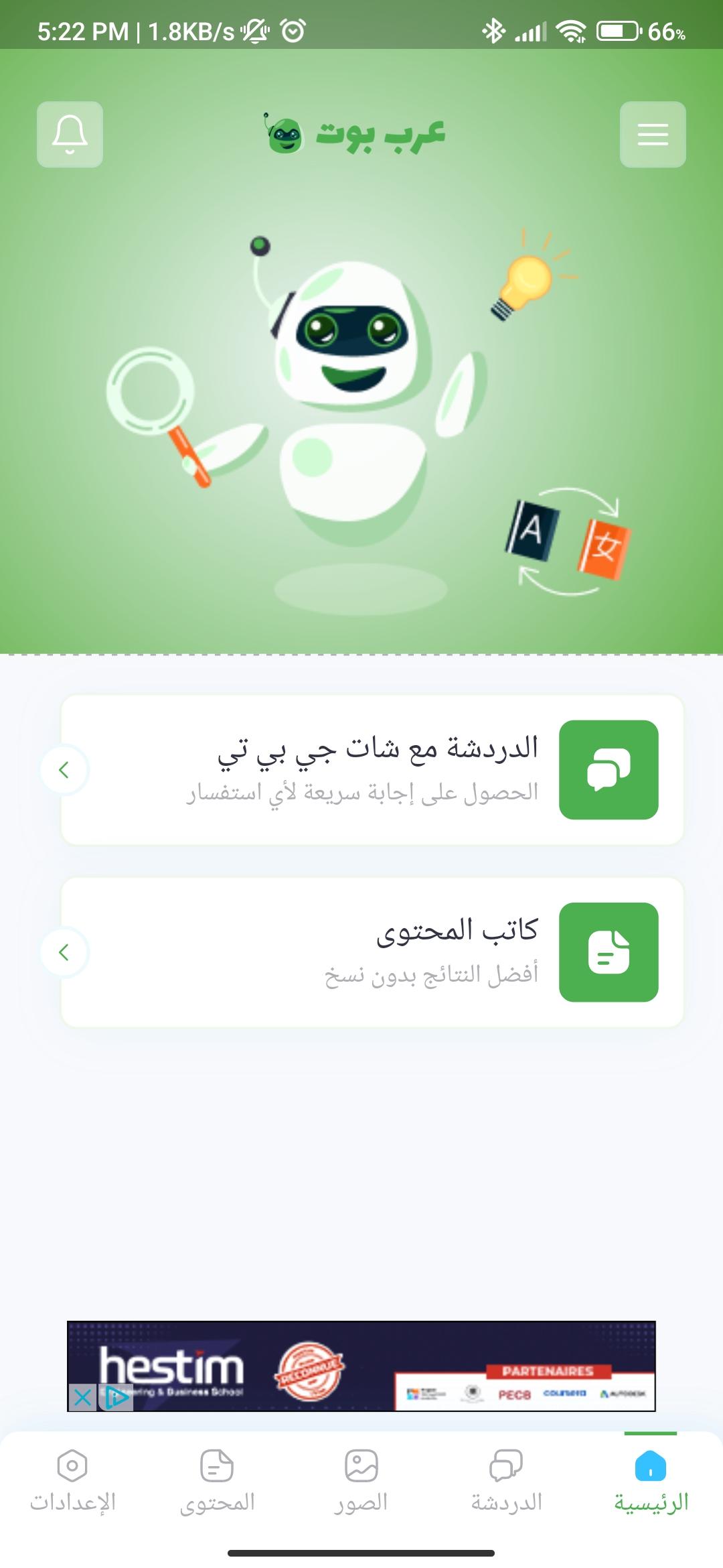Bu uygulama, OpenAI'nin en gelişmiş yapay zekası ile Arapça olarak sohbet etmenize yardımcı olur.