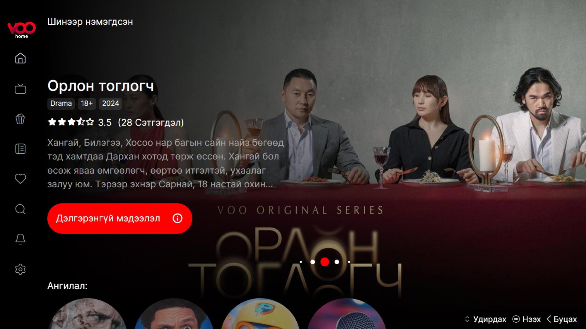 VOO Sineması: VOO Sineması ile en yeni gişe rekorları kıran filmleri ve premium içerikleri izleyin. Kataloğumuzu hem Moğol hem de uluslararası sinemalardan çıkan en yeni yapımlarla sürekli olarak güncelliyoruz.