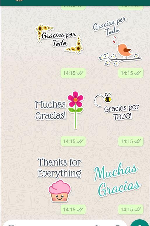 Muchos stickers con frases de agradecimiento para compartir con quien tu quieras por medio de Whatsapp.