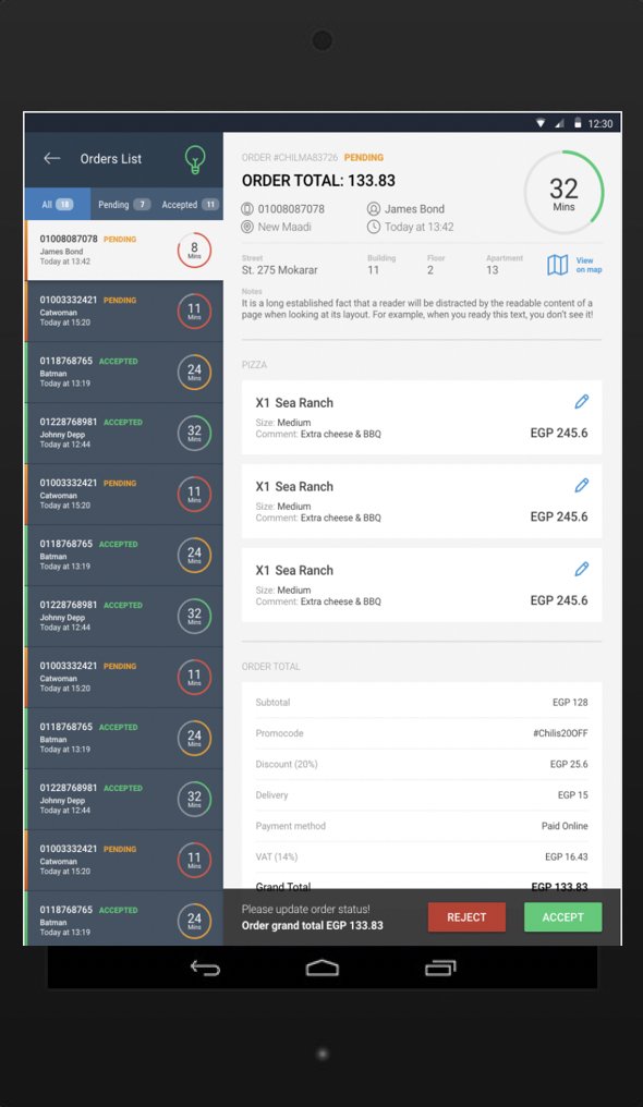 elmenus Canlı Tracker elmenus online sipariş hizmetine abone restoranlar tarafından kullanılan tablet uygulaması. Size her gün etraflarında şaşırtıcı yemekler keşfediyorlar aç kullanıcıları olsun. Canlı izci uygulaması harita konumu ile kullanıcı adresine detayları ile gerçek zamanlı olarak siparişleri görmek sağlar, onların tam istenen Topingler ile emirleri. Yöneticiler gerçek zamanlı raporları kullanarak performansları hakkında bilgiler kontrol edebilirsiniz.